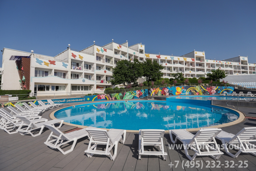 | В стоимость входит: | 5-разовое питание по системе «шведский стол», размещение в 4-местных номерах с удобствами, программа (до 20 мероприятий в день), пользование инфраструктурой лагеря (ресторан, детское кафе, три бассейна с элементами аквапарка, кинотеатр, SPA-центр, теннисный корт, футбольное поле, баскетбольная и волейбольная площадки), пляж песчано-галечный. |