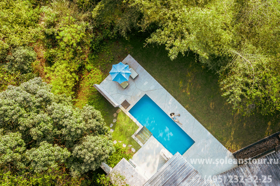 Dharana pool villa (205 кв. м): открытый персональный бассейн, частный сад, гоститная, спальня, ванная комната.
