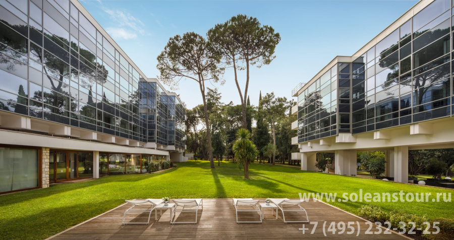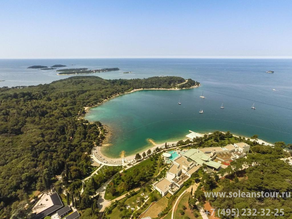 Отель, реконструированный в 2005/2006 гг. (были обновлены холл и номера), расположен в старинном лесопарке Zlatni Rt. Отель находится в 170 м от берега моря, дорожка к собственной бухте и пляжу отеля проходит через живописные зеленые поляны в тени великолепных хвойных деревьев. Расстояние до аэропорта Пулы – 40 км, до центра Ровиня – около 1 км. В здании отеля 5 этажей. Отель является членом престижной ассоциации Special Hotels of the World, что гарантирует качество размещения и обслуживания на высшем уровне.