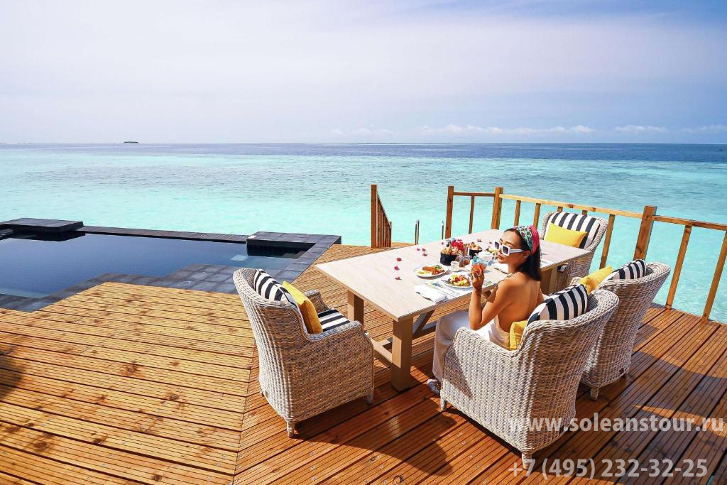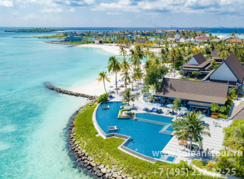Комплекс расположен в 15 минутах езды на скоростном катере от аэропорта Мале.