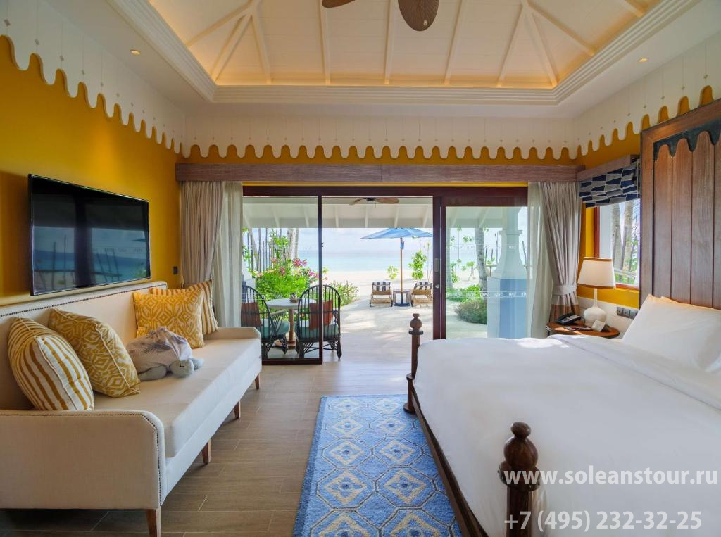 Beach room (44 кв. м): терраса, спальня с кроватью king-size или двумя отдельными кроватями, ванная комната. Вид на океан. Прямой выход к пляжу.