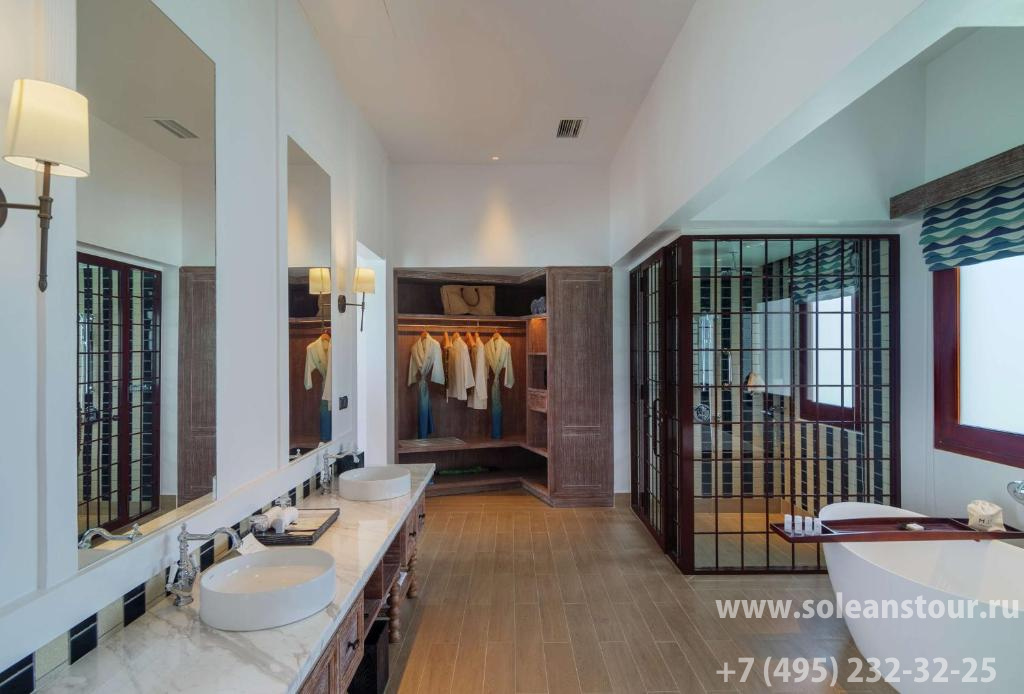 2-bedroom family beach villa with pool (120 кв. м): терраса с открытым персональным бассейном, 2 спальни (одна – с кроватью king-size, другая – с двумя отдельными кроватями), 2 ванные комнаты. Вид на океан. Прямой выход к пляжу.