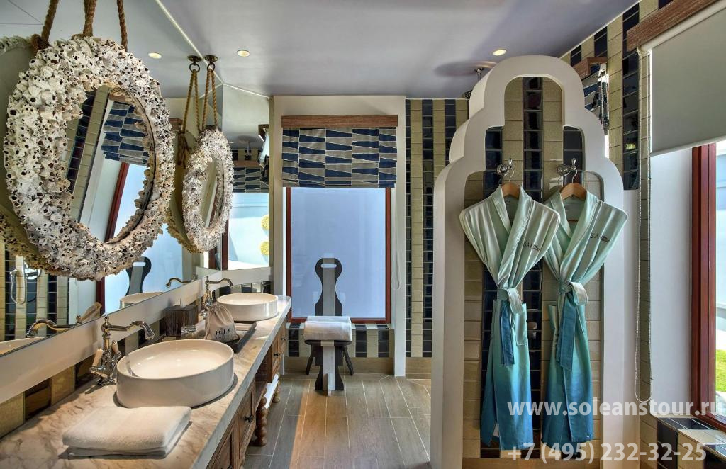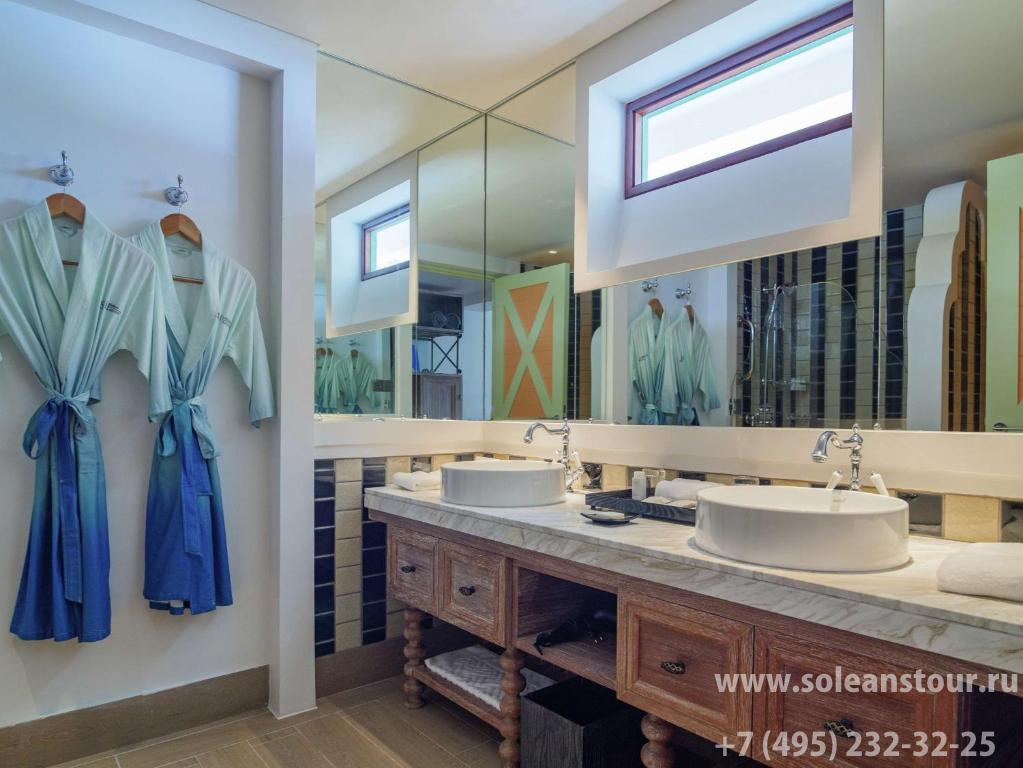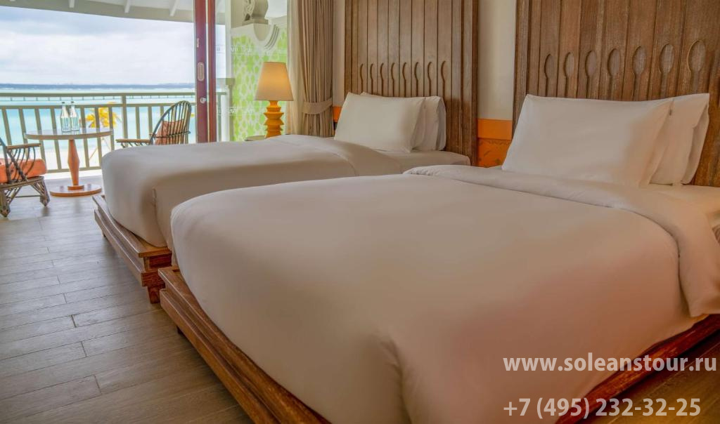 2-bedroom family beach room with pool (88 кв. м): терраса с открытым персональным бассейном, 2 спальни (одна – с кроватью king-size, другая – с двумя отдельными кроватями), 2 ванные комнаты. Вид на океан. Прямой выход к пляжу.