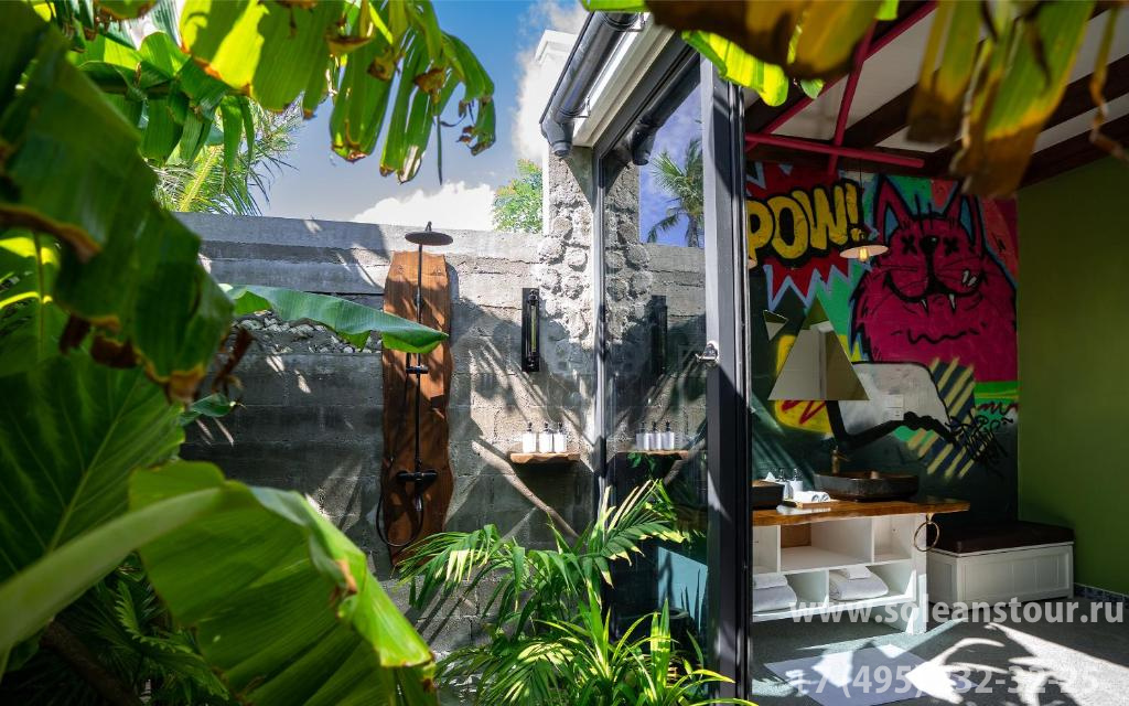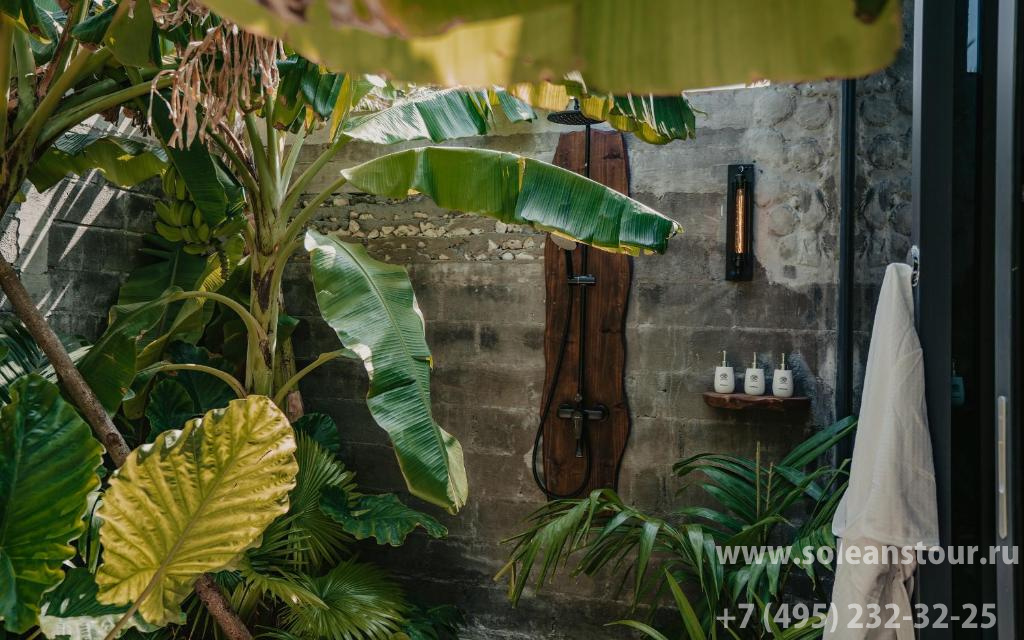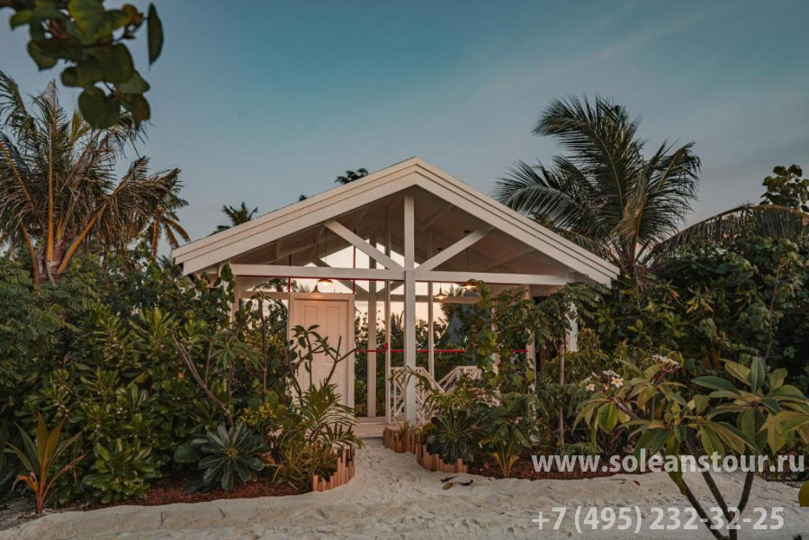 Береговые виллы, площадь — 56 кв. м, вид на сад/бассейн. В номере: спальня (1 двуспальная кровать), ванная комната, душ на открытом воздухе, терраса, личный мини-бассейн с выходом к общему бассейну. Макс. число гостей — 3 чел.