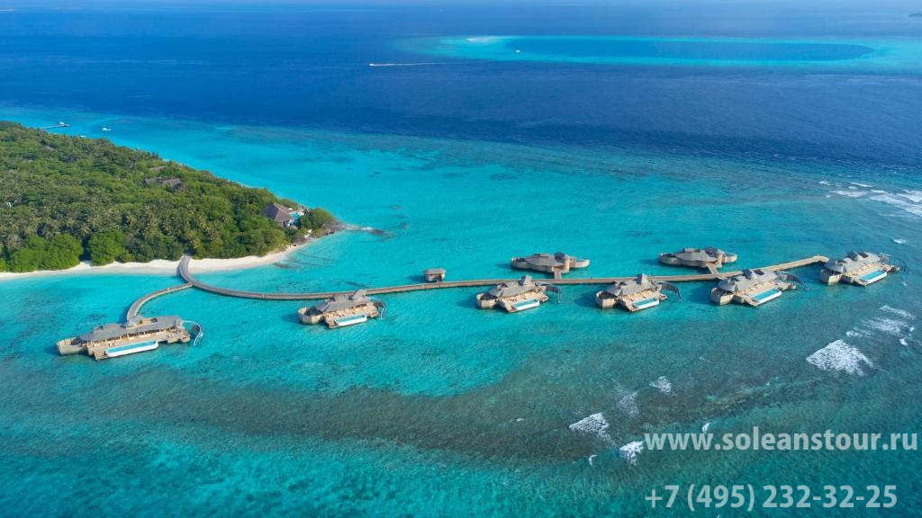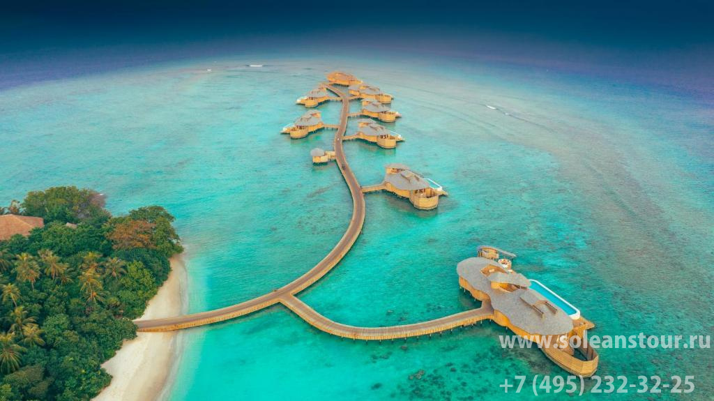 Water reserve 2-bedroom with slide (2-bedroom water reserve) (ex. Water reserve 2-bedroom with slide (ex. Water retreat 2-bedroom with slide) (2-bedroom water retreat) (общая площадь 857 кв. м): двухуровневая вилла. Терраса с открытым персональным бассейном, водная горка, гостиная, мини-кухня, 2 спальни, гардеробная, 3 ванные комнаты (одна - на открытом воздухе с ванной и душем). Расположены на сваях над водой.