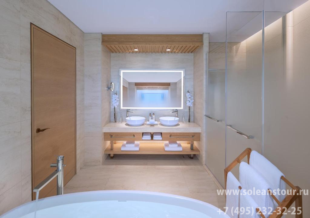 Deluxe suite (95 кв. м): балкон или терраса, гостиная, спальня с кроватью king-size, ванная комната с ванной и душевой кабиной. Вид на лагуну, море, бассейн или сад.