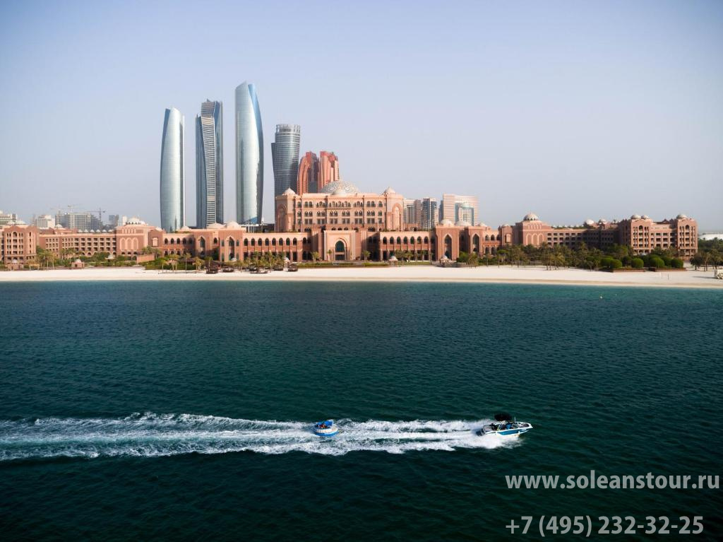 Здание отеля – сказочной красоты дворец, выдержанный в лучших традициях арабской архитектуры. На крыше главного здания возвышается огромный купол, выложенный цветной мозаикой. Его окружают купола поменьше, каждый из которых украшен золотым шпилем. Цветовая гамма, выбранная дизайнерами для отделки дворца, воспроизводит многочисленные оттенки песков величественной Аравийской пустыни. Emirates Palace Mandarin Oriental, Abu Dhabi первоначально задумывался как место проведения правительственных саммитов и конференций в Персидском заливе и лишь позже, уже на стадии проектирования, был превращен в отель. На сегодняшний день Emirates Palace Mandarin Oriental, Abu Dhabi предлагает чуть меньше 400 номеров, при этом на каждого гостя приходится шесть человек обслуживающего персонала. Это гарантирует действительно высококлассный сервис. К услугам отдыхающих в Emirates Palace Mandarin Oriental, Abu Dhabi самая современная техника, интерактивная система управления аудио- и видеоаппаратурой и бытовыми приборами. Интересная деталь: специально для Emirates Palace Mandarin Oriental, Abu Dhabi были сделаны на заказ 1002 люстры Swarovski (их чистка занимает полный рабочий день 10 сотрудников). Бизнес-центр отеля, оборудованный по последнему слову техники, является необычайно популярным местом проведения международных конференций и встреч на высоком уровне.