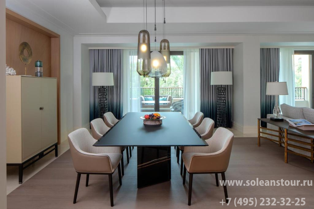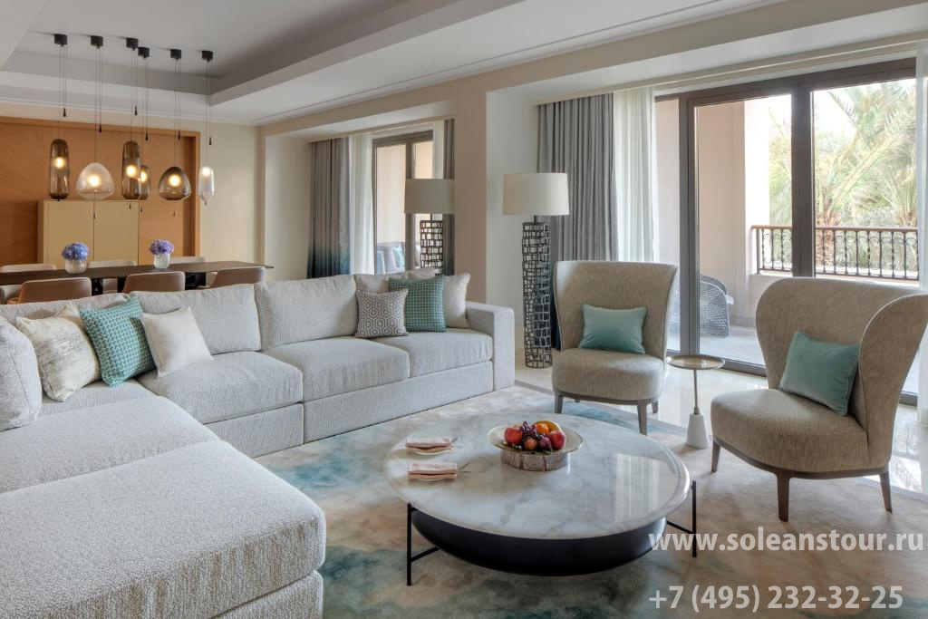 Jumeirah sea view suite (136 кв. м): балкон или терраса, гостиная с обеденной зоной (стол на 4 персоны), спальня с кроватью king-size, 2 ванные комнаты (одна - с ванной и душевой кабиной, вторая - с душем). Расположены с 1 по 4 этаж. Вид на море и пляж.