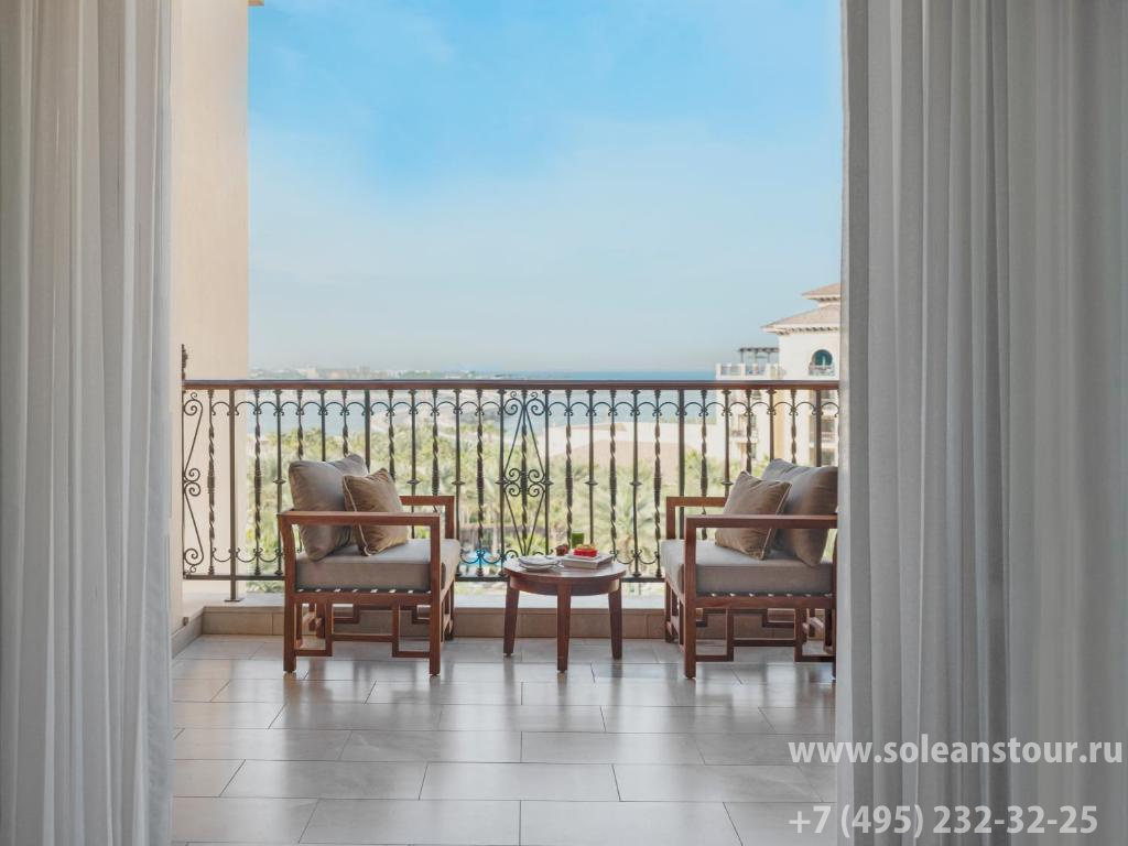 Premier sea view room (70 кв. м): балкон или терраса, спальня с кроватью king-size или двумя кроватями queen-size, ванная комната с ванной и душевой кабиной. Расположены со 2 по 4 этаж. Вид на Персидский залив и пляж Джумейра.