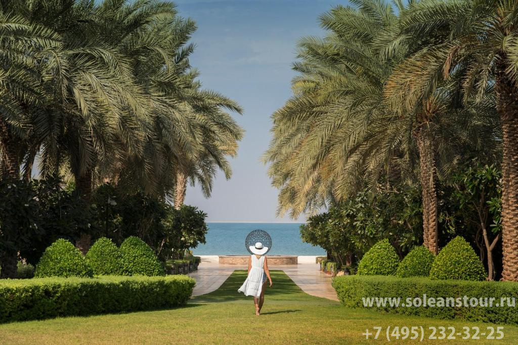 Deluxe partial sea view room (70 кв. м): балкон или терраса, спальня с кроватью king-size или двумя кроватями queen-size, ванная комната с ванной и душевой кабиной. Расположены на 1 и 2 этаже. Частичный вид на Персидский залив и сад.