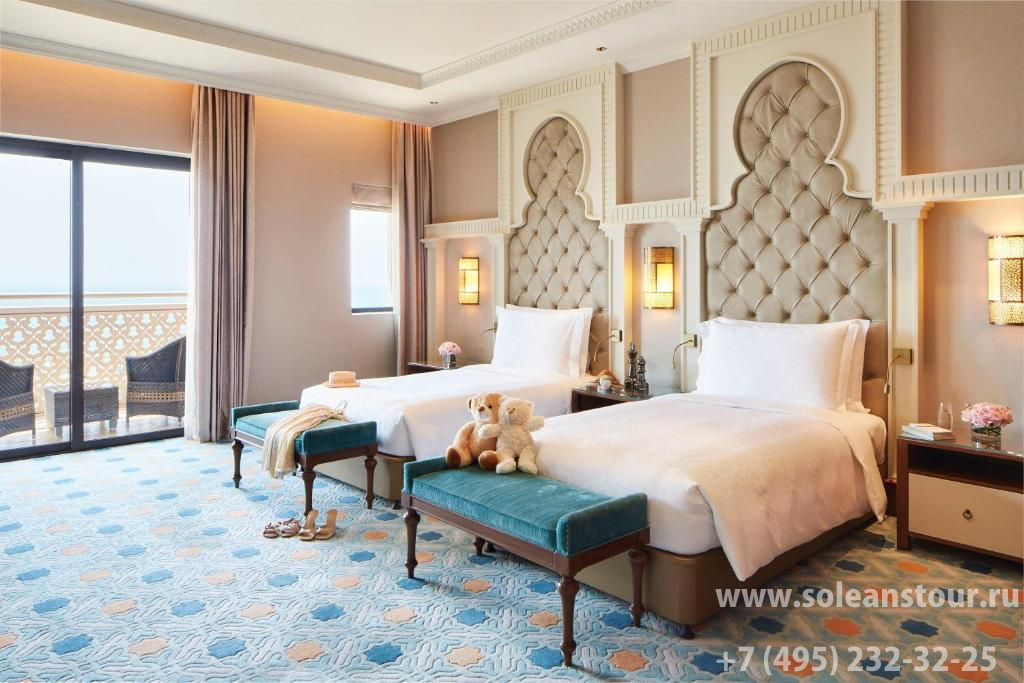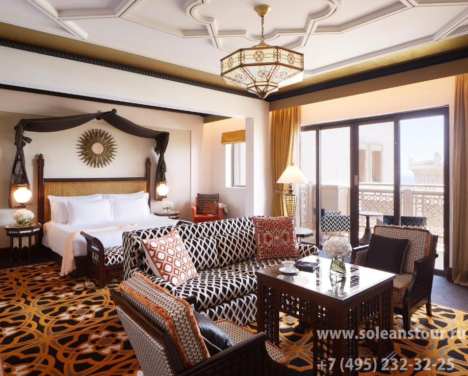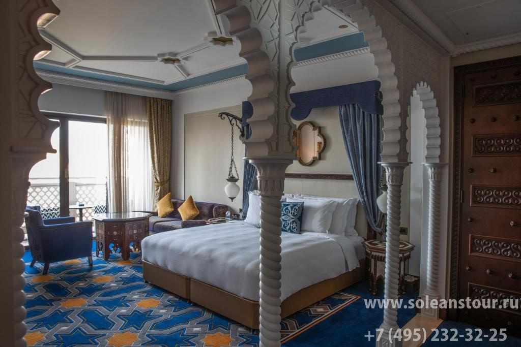 К услугам гостей 387 номеров и 43 эксклюзивных сьюта. В современном дизайне прослеживаются арабские мотивы, а цветовое решение интерьера должно напоминать гостям о песчаных дюнах, голубом небе и морском бризе. С балконов и террас открывается прекрасный вид на море, живописные сады и знаменитый отель-парус Jumeirah Burj Al Arab. Самые притязательные гости могут выбрать Royal suite, расположенный на верхнем этаже отеля, и наслаждаться беспрецедентной роскошью и захватывающими дух пейзажами.
