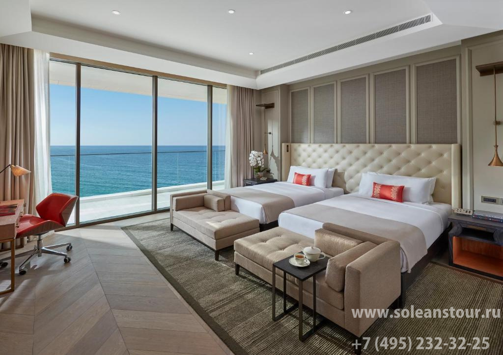 Two bedroom premier sea view suite (178 кв. м): балконы, гостиная с обеденной зоной (стол на 4 персоны), 2 спальни (одна – с кроватью king-size, другая – с двумя отдельными кроватями), 2 ванные комнаты. Вид на Персидский залив. Гости данных номеров имеют особые привилегии.