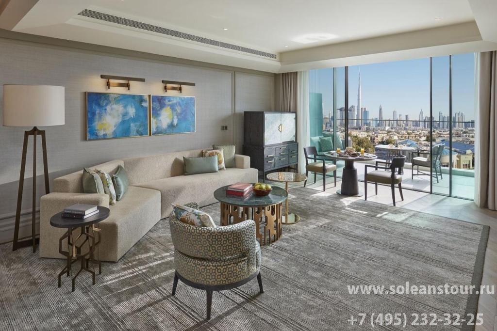 Sea view suite (120 кв. м): балкон, гостиная с обеденной зоной (стол на 4 персоны), спальня с кроватью king-size, ванная комната с ванной и душевой кабиной. Вид на Персидский залив. Гости данных номеров имеют особые привилегии.