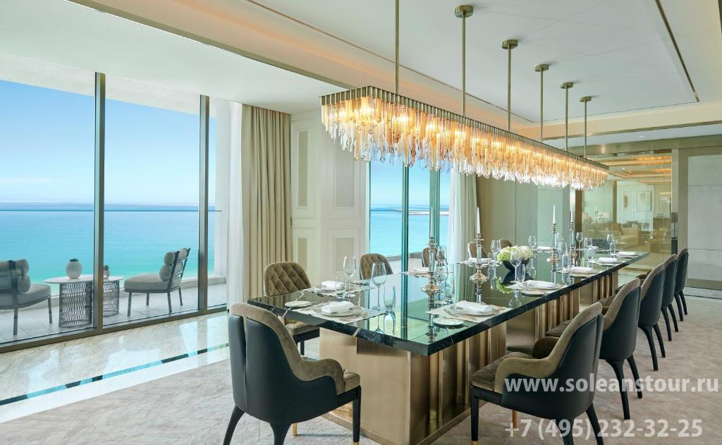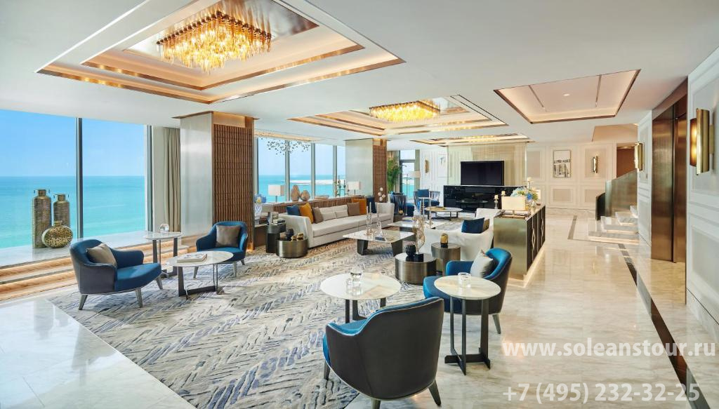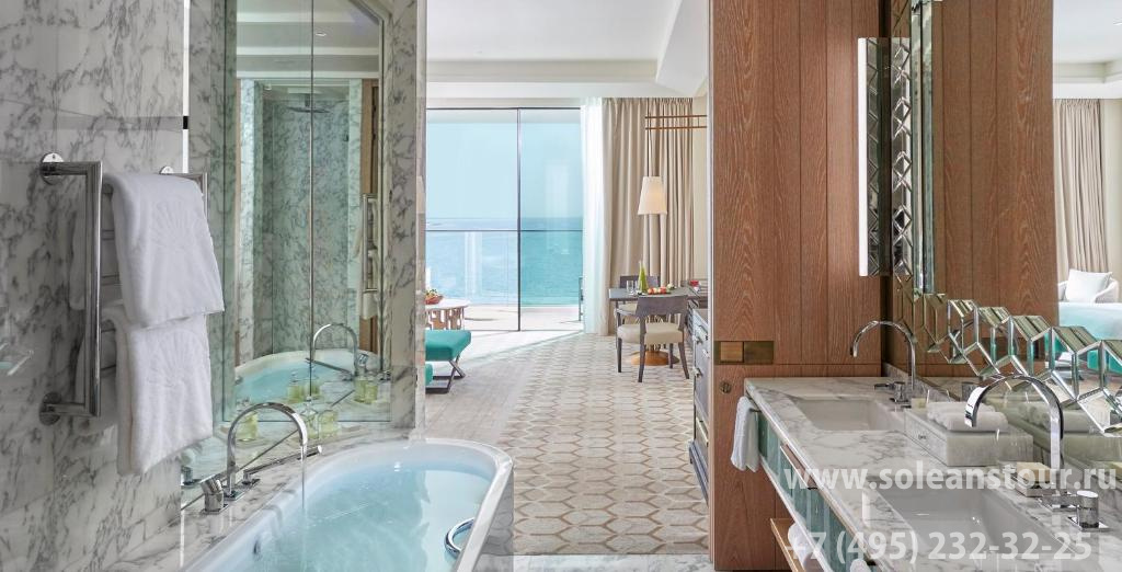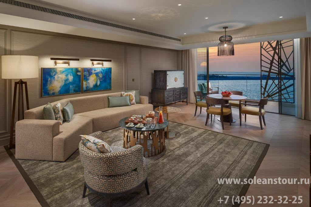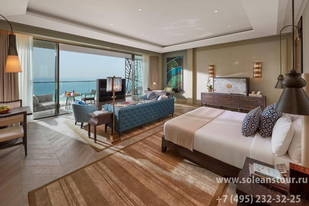 Premier sea view suite (120 кв. м): балкон, гостиная с обеденной зоной (стол на 4 персоны), спальня с кроватью king-size, ванная комната с ванной и душевой кабиной. Прямой вид на Персидский залив. Гости данных номеров имеют особые привилегии.