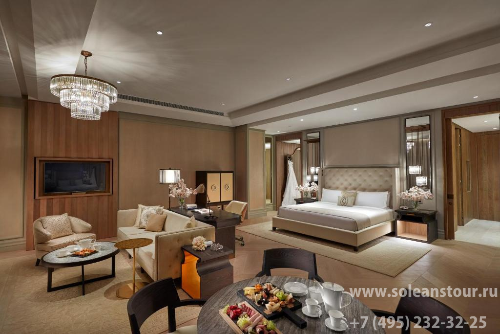 Mandarin sea front suite (160 кв. м): балкон, гостиная с обеденной зоной (стол на 4 персоны), спальня с кроватью king-size, ванная комната с ванной, душевой кабиной и парной. Расположены в угловой части здания. Вид на Персидский залив. Гости данных номеров имеют особые привилегии.