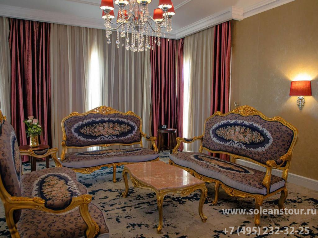 Deluxe room (35 кв. м): спальня с кроватью king-size, ванная комната с душевой кабиной с функцией «тропический дождь». В некоторых номерах есть балкон. Вид на сад, Персидский залив или бассейн.