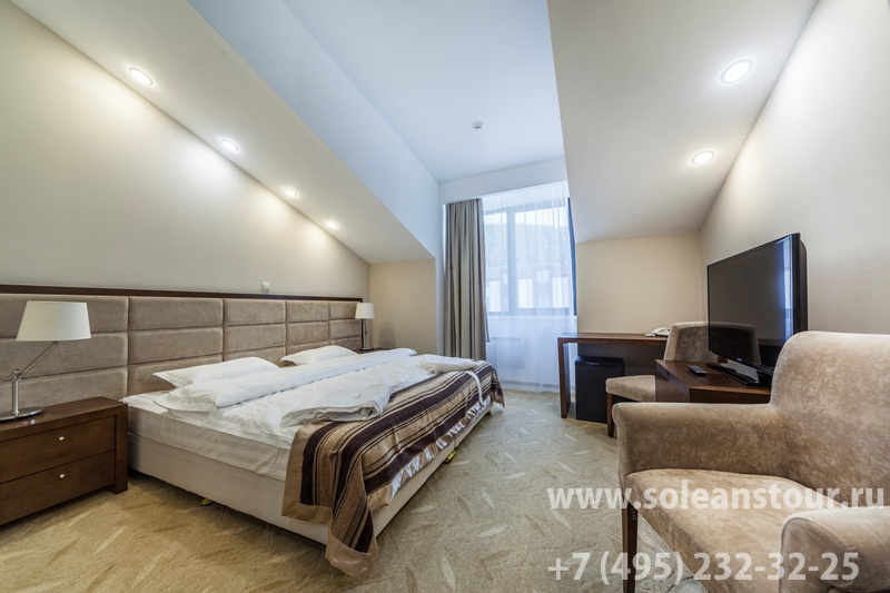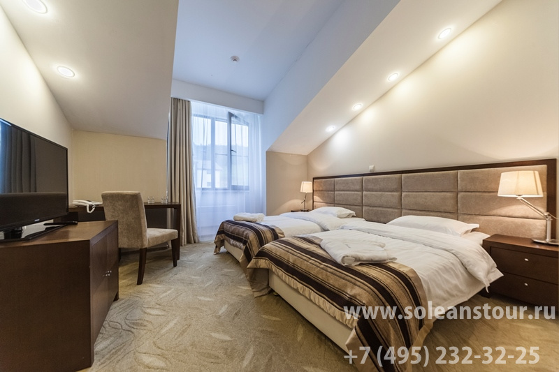 Номер площадью 20 кв.м, состоящий из одной жилой комнаты с двумя кроватями и ванной комнаты с душевой кабиной, рассчитанный на проживание одного/двух человек. В номерах Твин кровати стоят вместе, при необходимости — раздвигаются.
