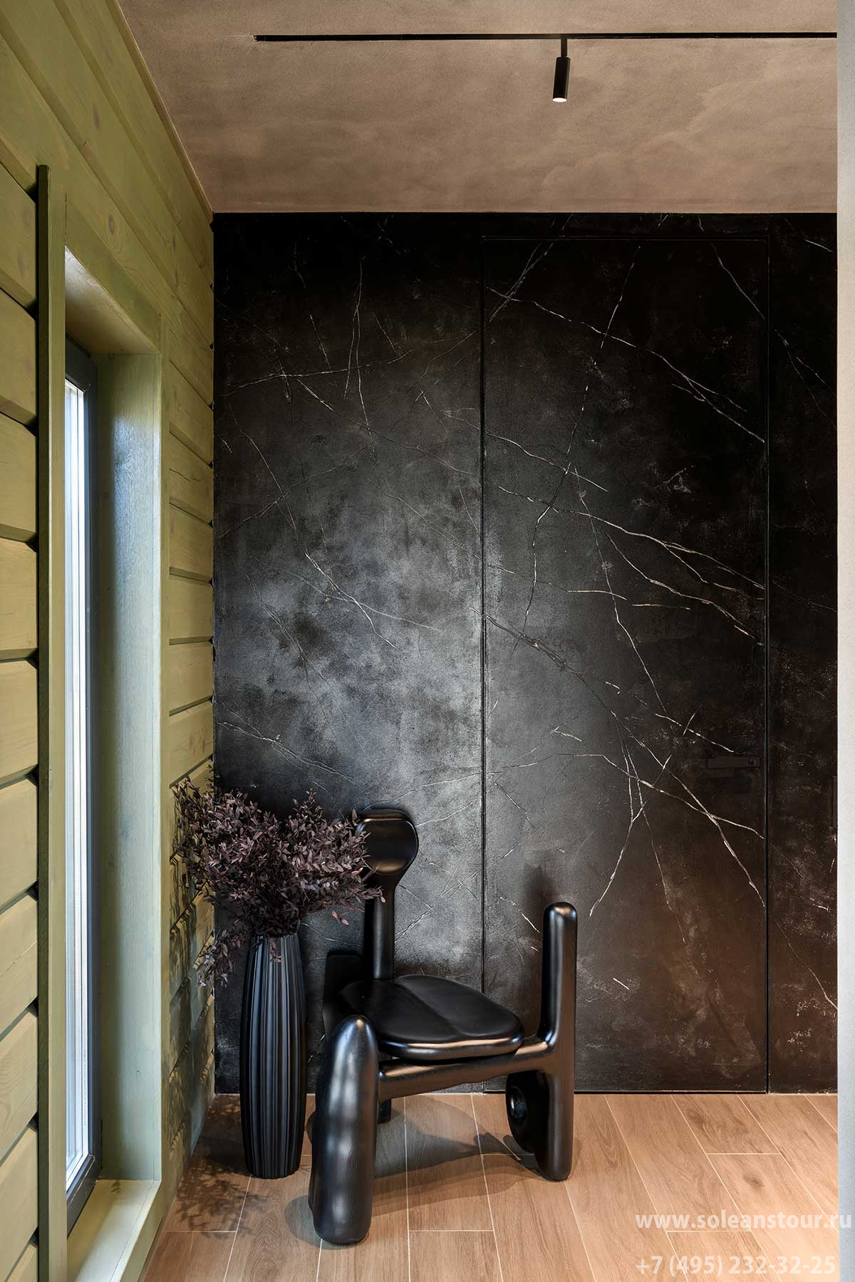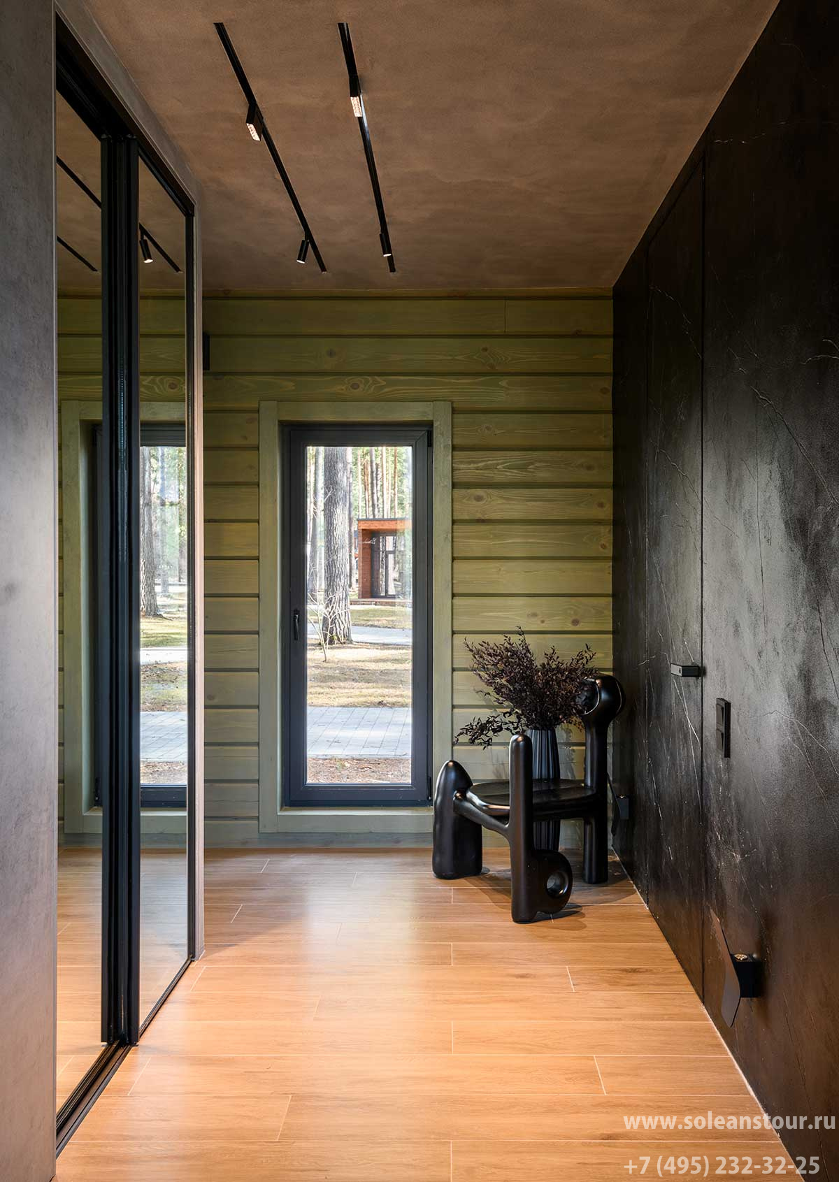 Все делюксы разделены на 3 зоны (3 подъезда грубо говоря), в каждом из которых по 7 делюксов, общая лаунж-зона с камином. В дополнении кухонный гарнитур с обеденным столом.