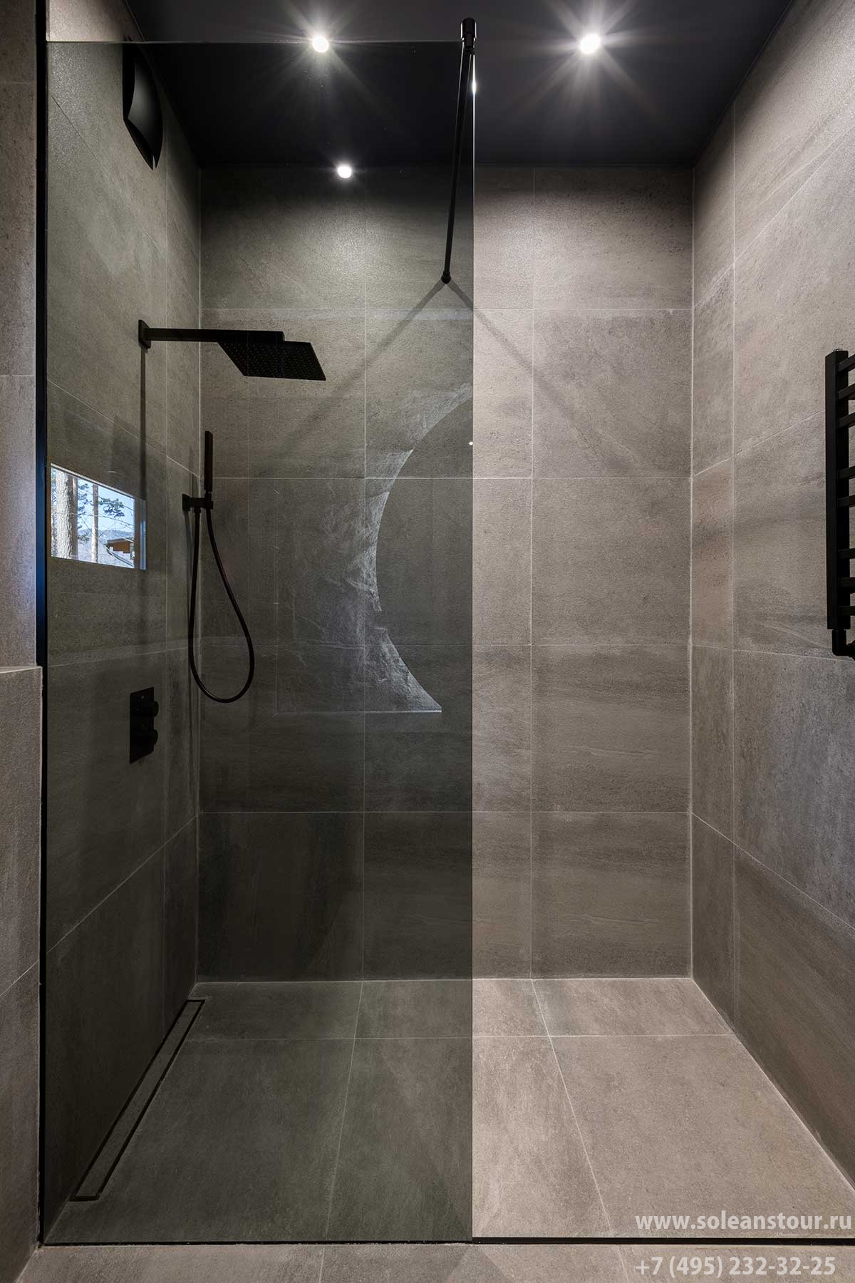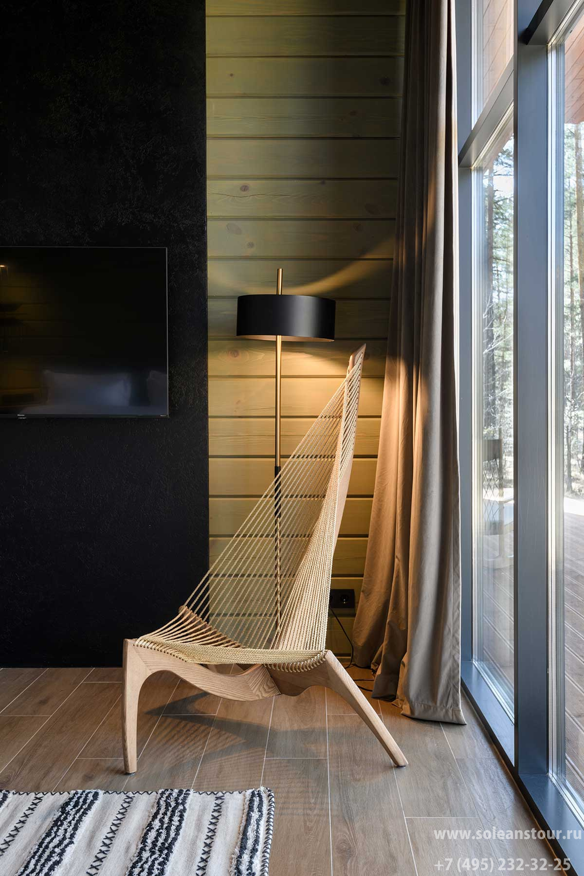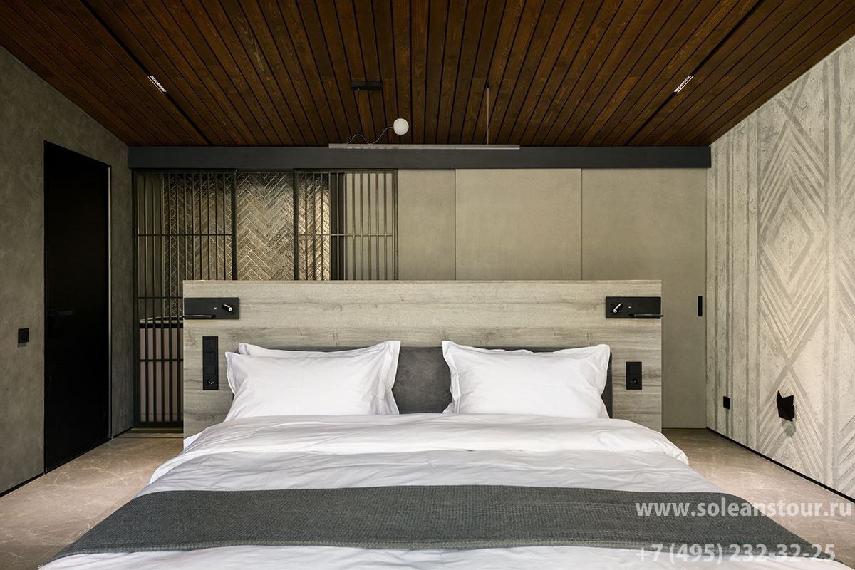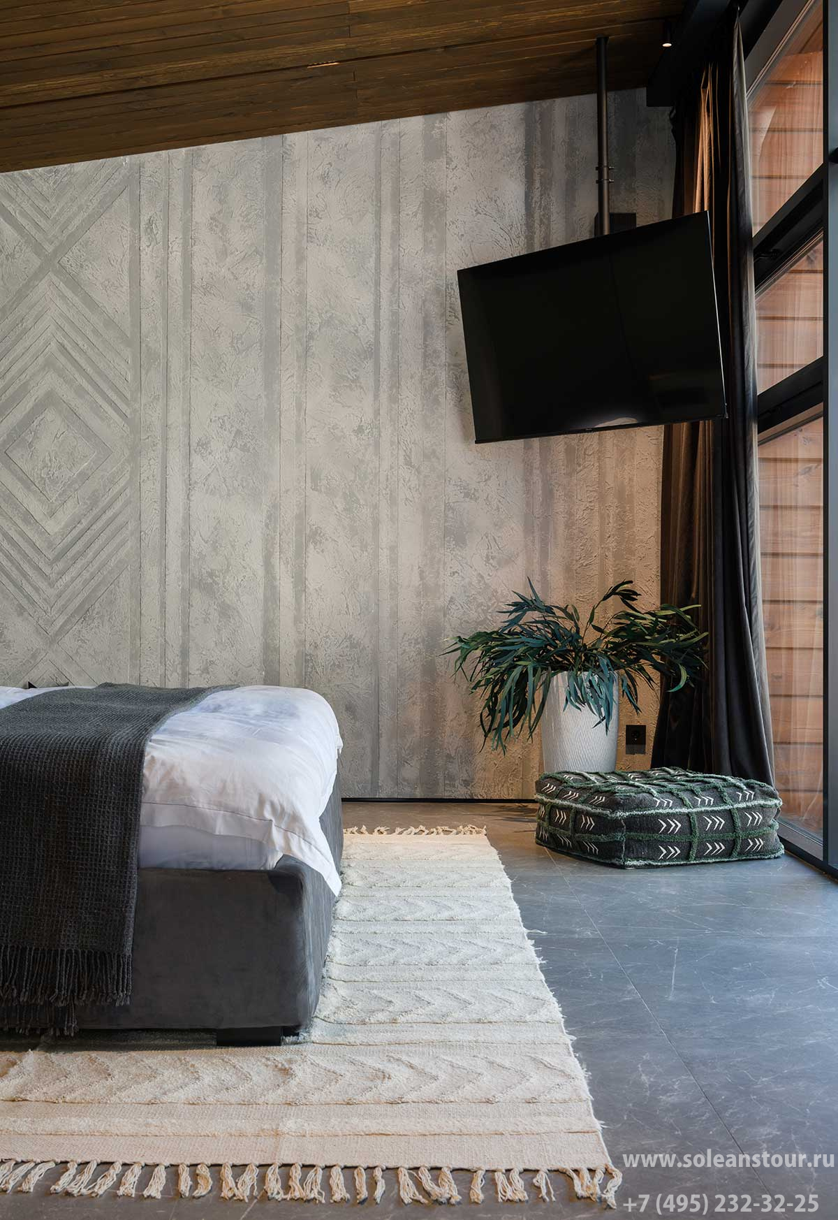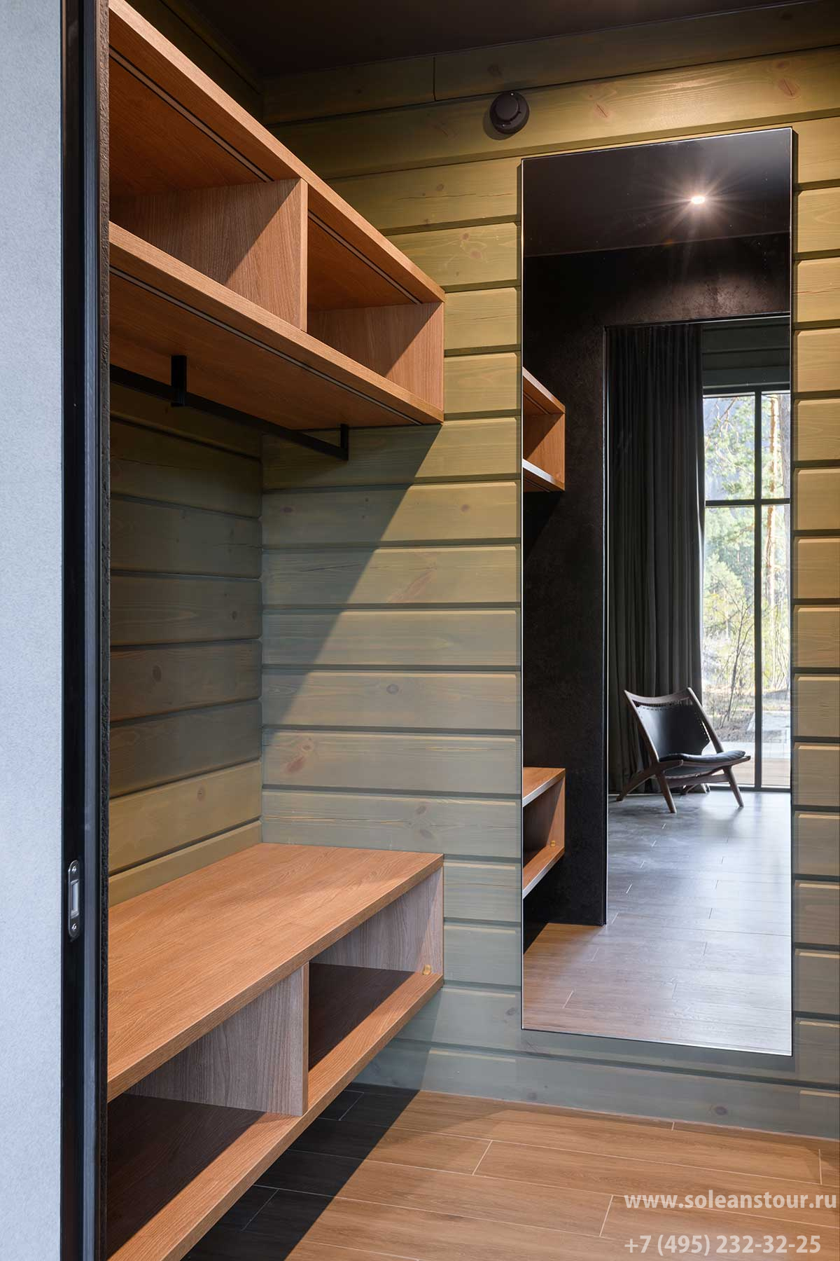В шале: собственная терраса 21,5м2, кухонная зона и капсульная кофемашина, просторные шкафы для вещей, ванная комната с полным комплектом гигиенических приборов, сейф, халаты, тапочки, мини-холодильник, гладилка и утюг.