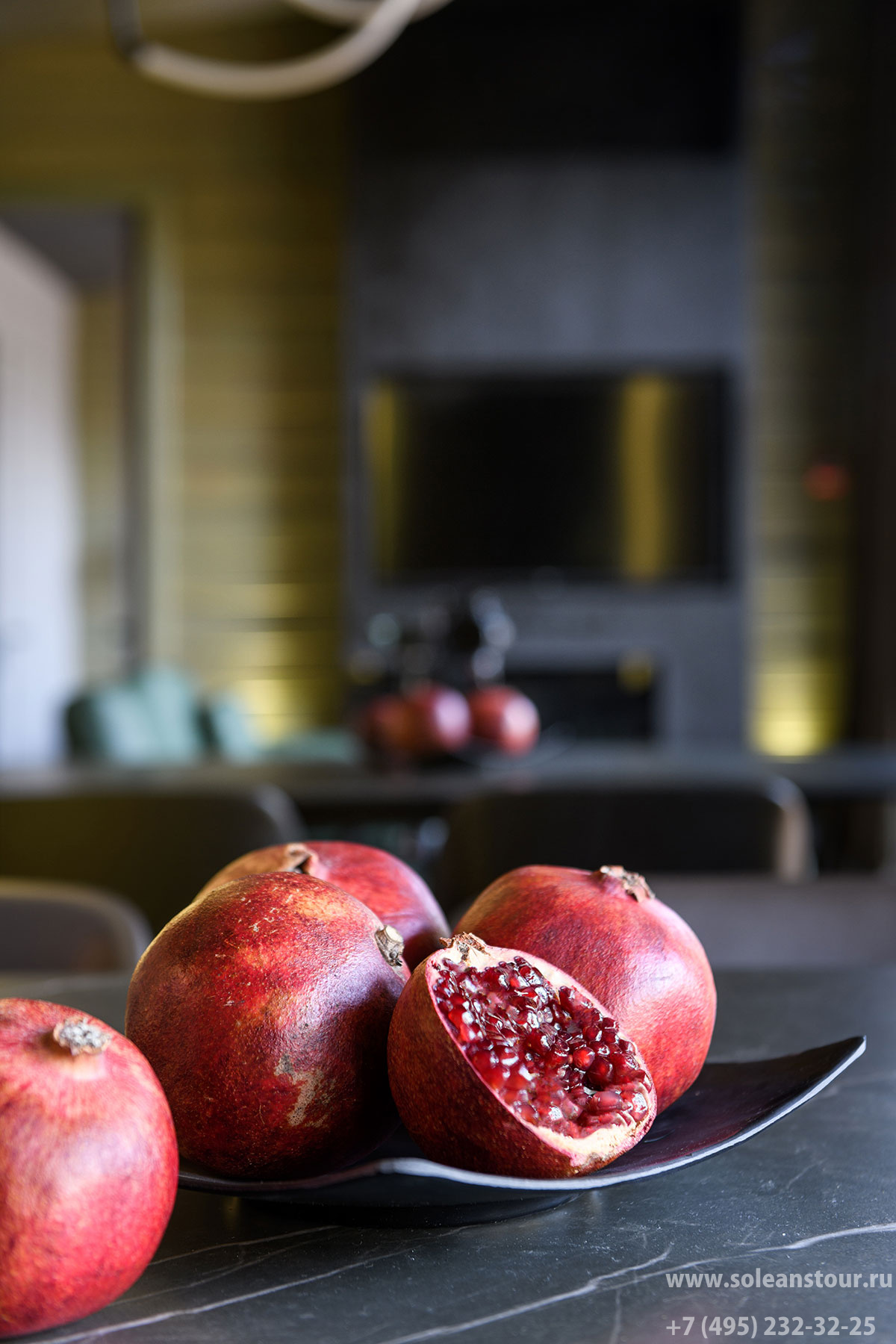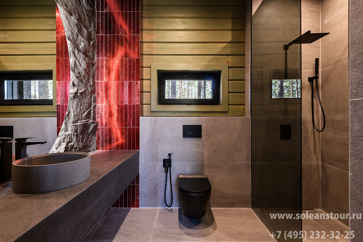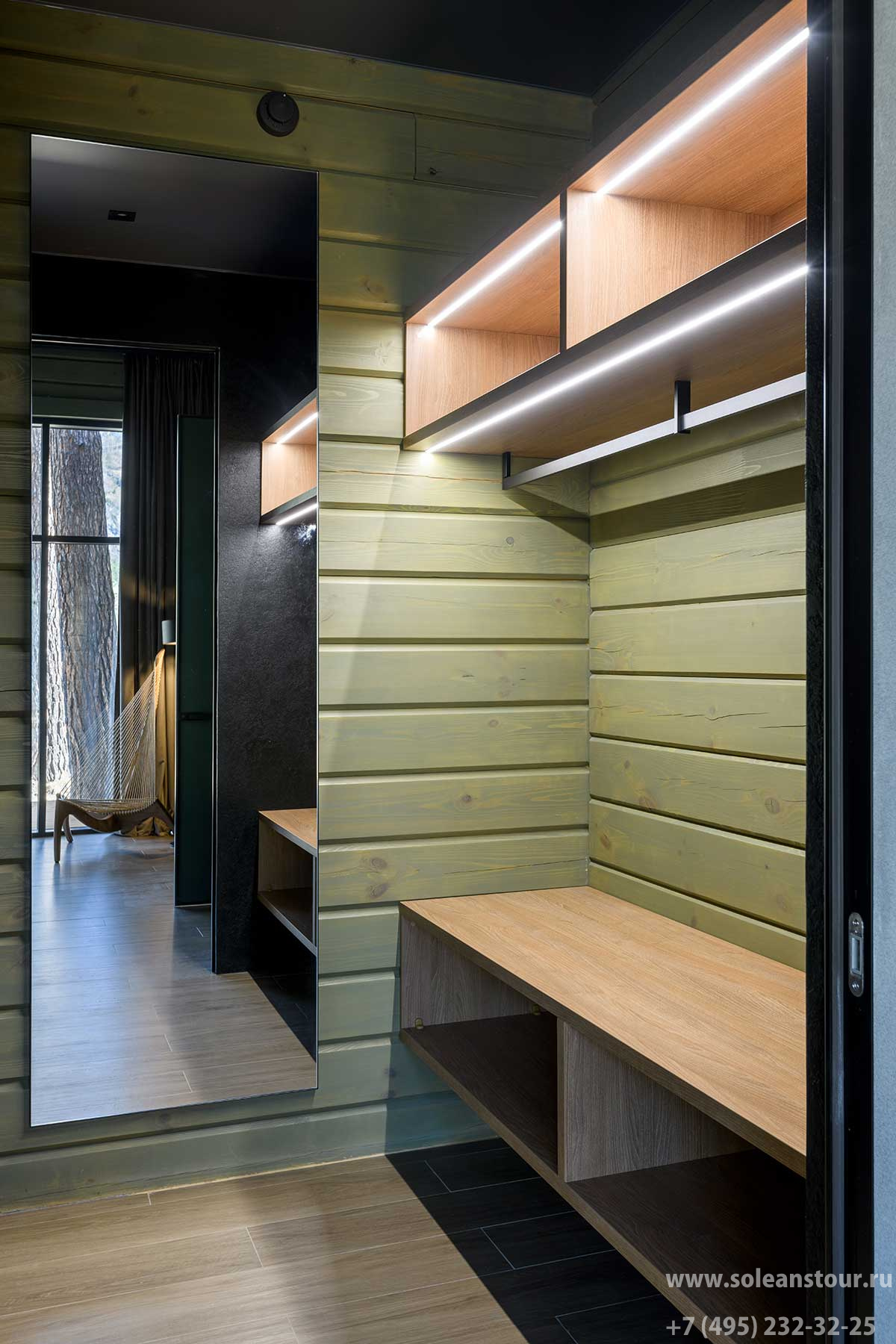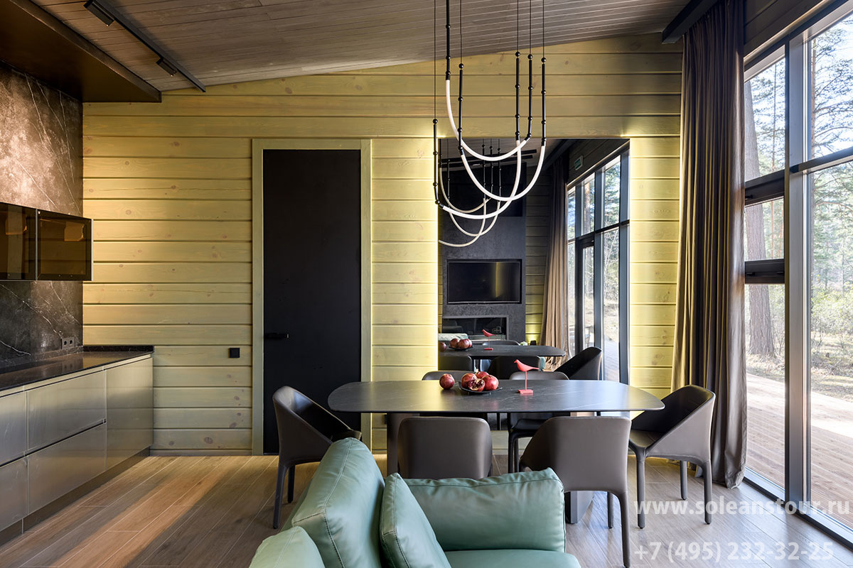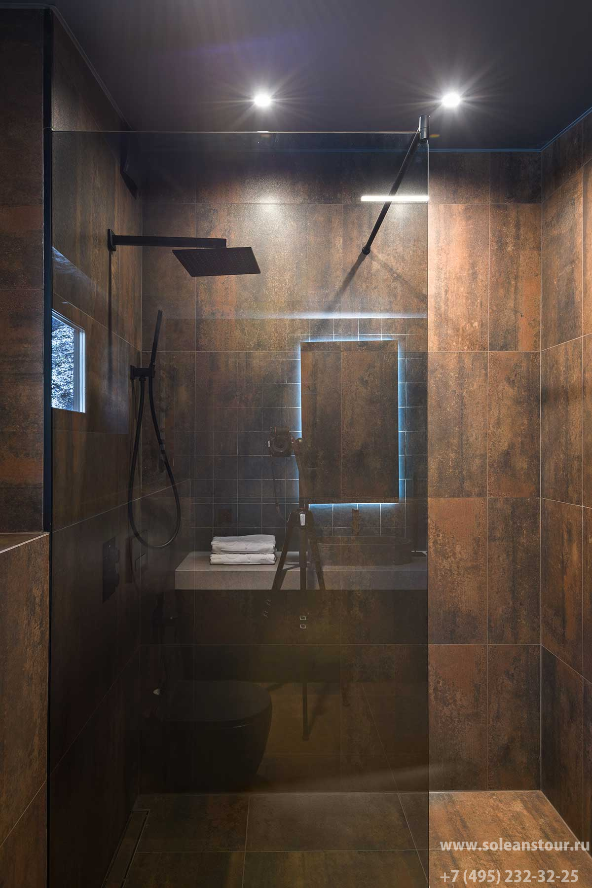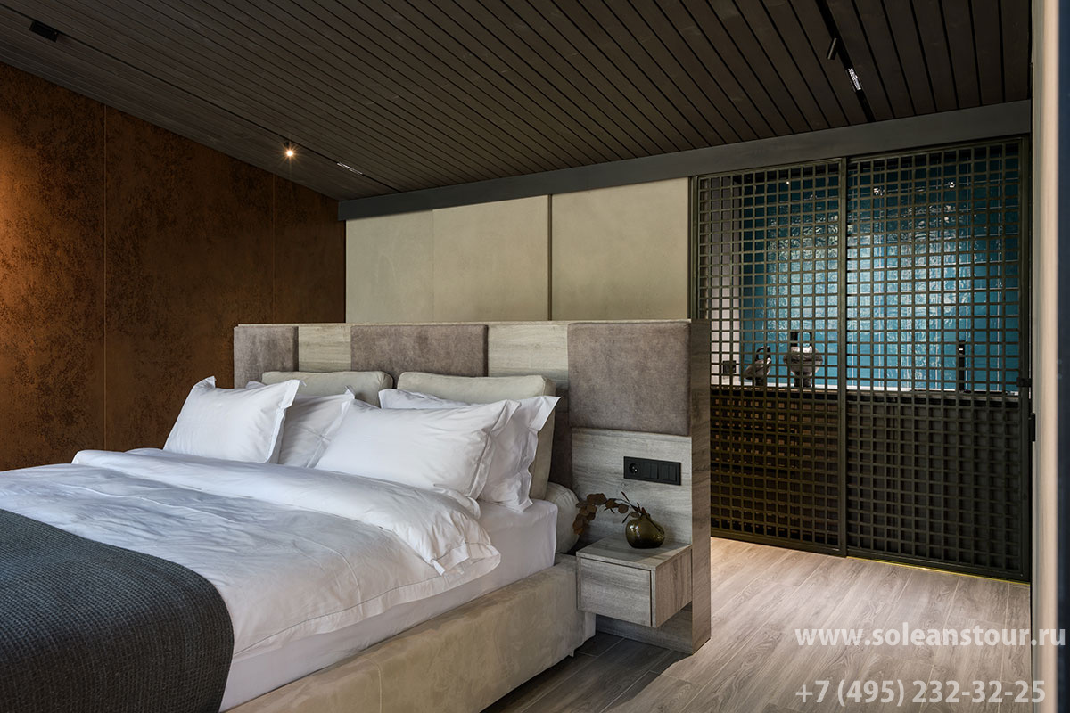 В шале: собственная терраса 21,5м2, кухонная зона и капсульная кофемашина, просторные шкафы для вещей, ванная комната с полным комплектом гигиенических приборов, сейф, халаты, тапочки, мини-холодильник, гладилка и утюг.