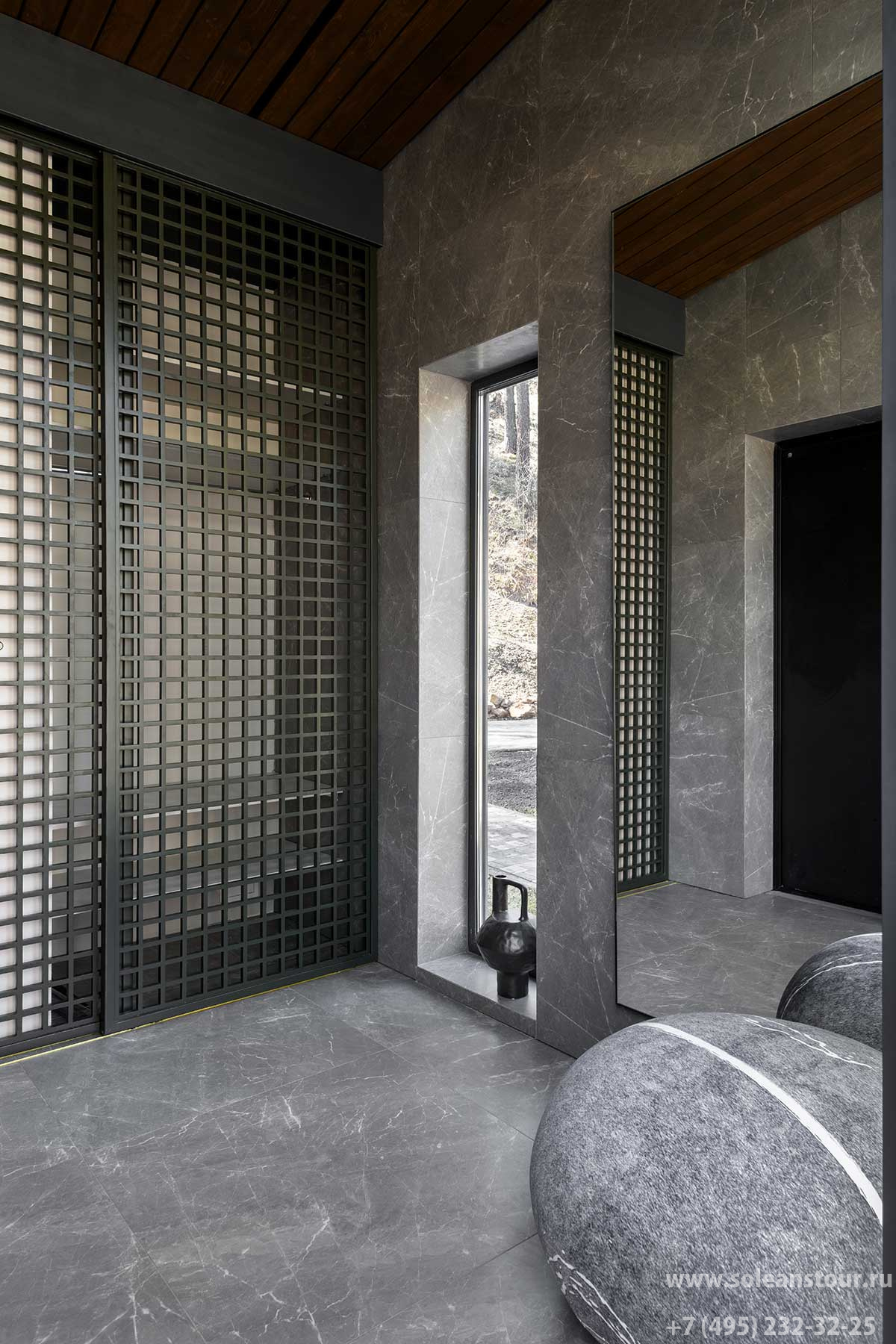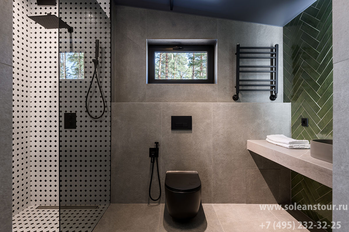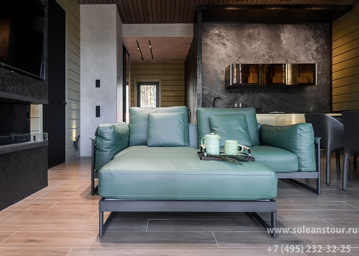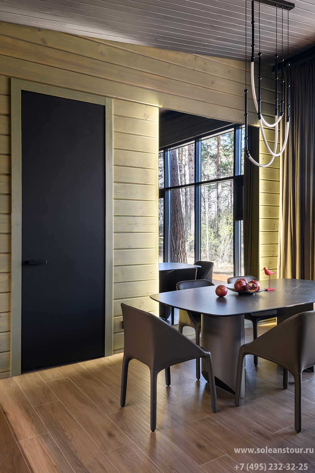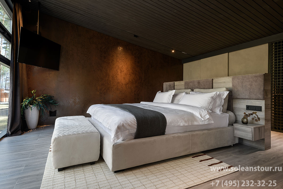 В шале: собственная терраса 21,5м2, кухонная зона и капсульная кофемашина, просторные шкафы для вещей, ванная комната с полным комплектом гигиенических приборов, сейф, халаты, тапочки, мини-холодильник, гладилка и утюг.