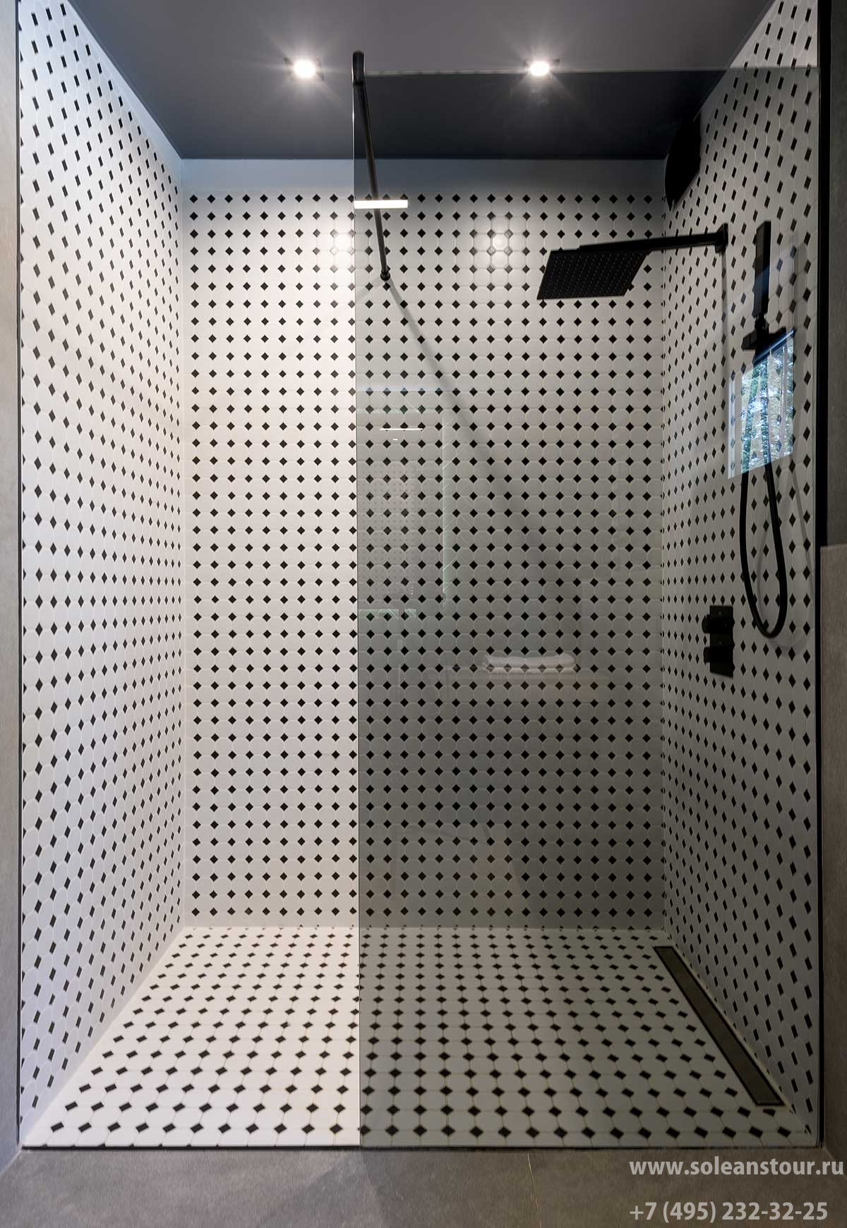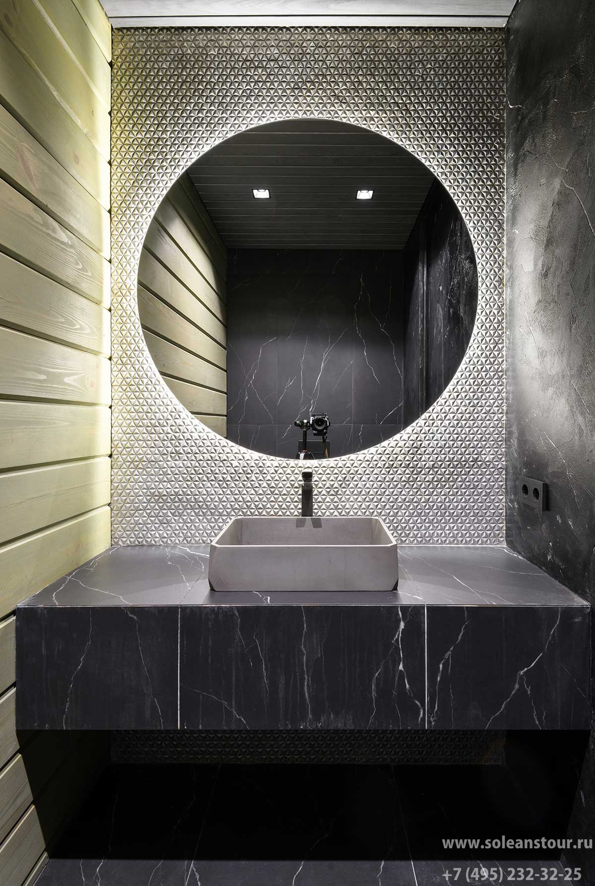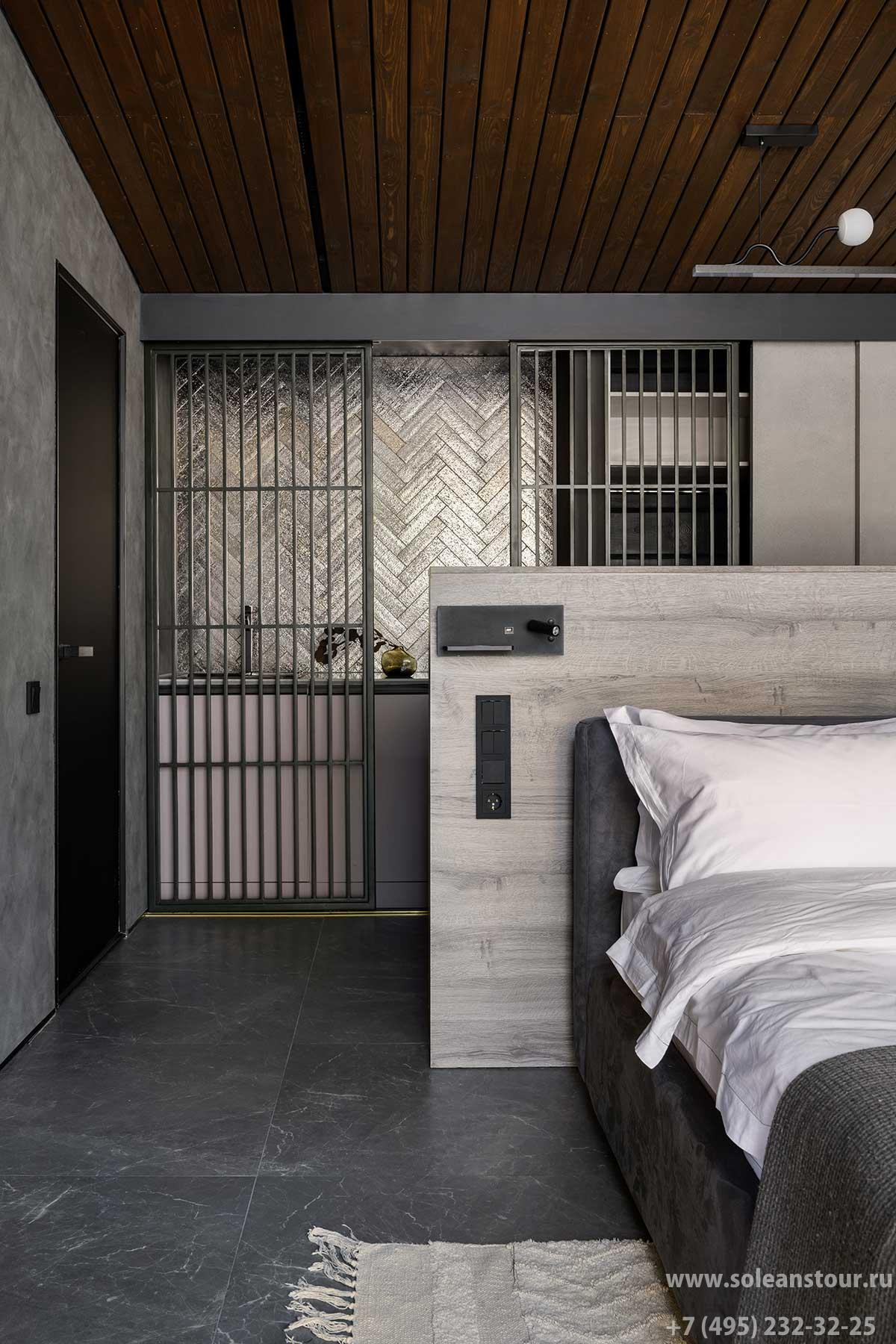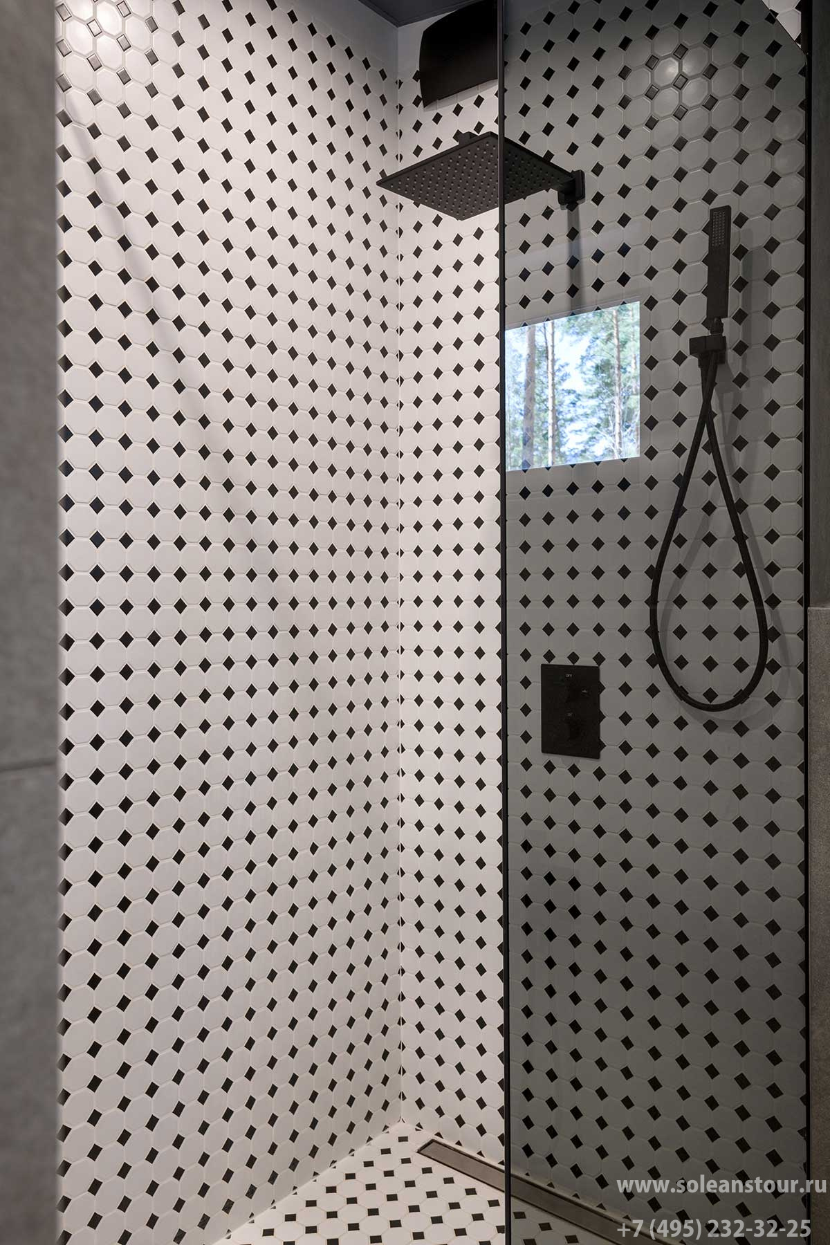 В шале премиум: две спальни (у каждой спальни собственная ванная комната, гардероб), холл с диваном, камином и кухонной зоной, в холле есть третий гостевой туалет без душа.