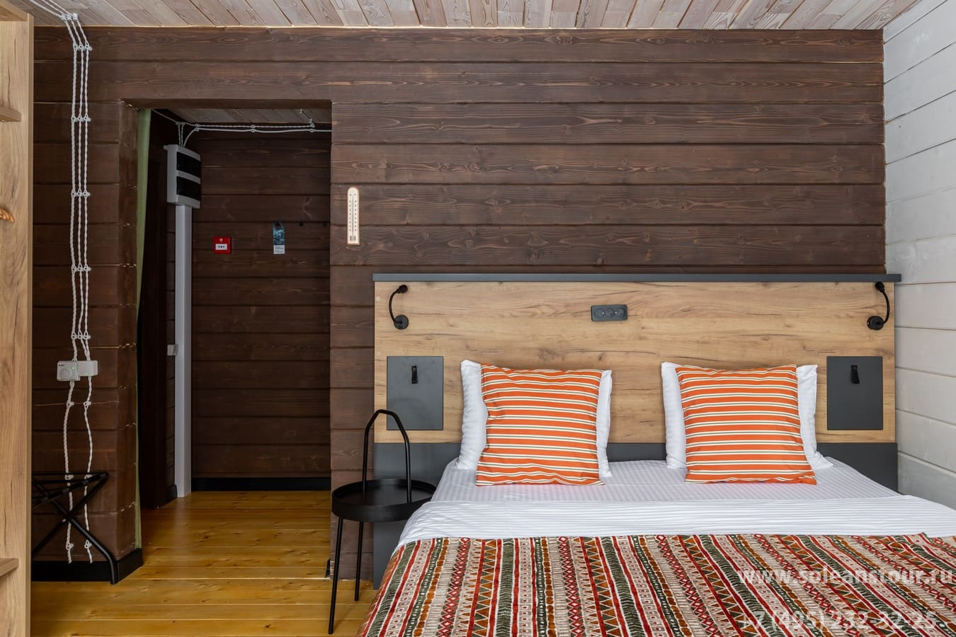 Из панорамных окон открывается вид на окрестности и собственную террасу с шезлонгами, мягкими креслами и теневыми зонтами. В ванной комнате есть все необходимое. Этот номер с собственной террасой — идеальное место, чтобы расслабиться и посвятить время себе, чтобы набраться сил перед новыми приключениями на Камчатке.