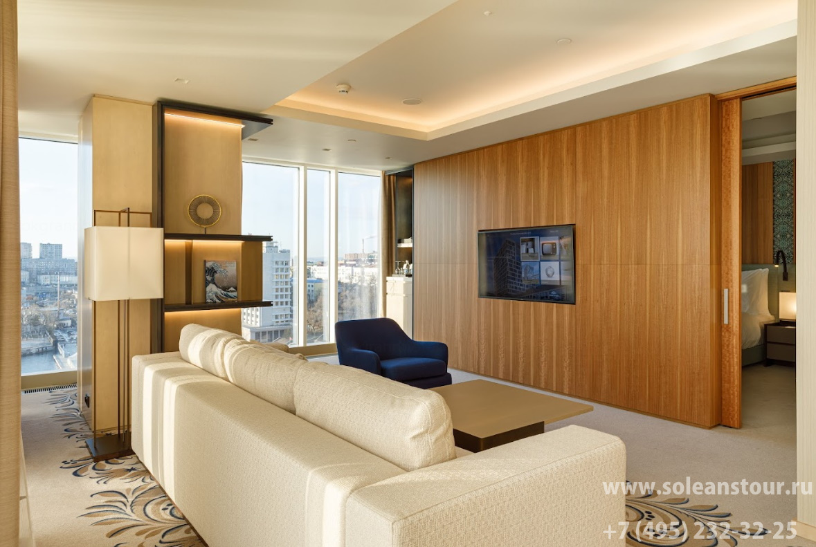 - "Президентский" номер - высшая категория размещения. Включает просторную гостиную с обеденной зоной, удобное рабочее пространство, шикарную спальню с отдельной ванной комнатой, гардеробную и lounge-зону. В стоимость входит доступ в Представительскую гостиную и особые привилегии: собственная стойка регистрации, сервировка завтрака "шведский стол", закуски и напитки днем, вечерний бар.