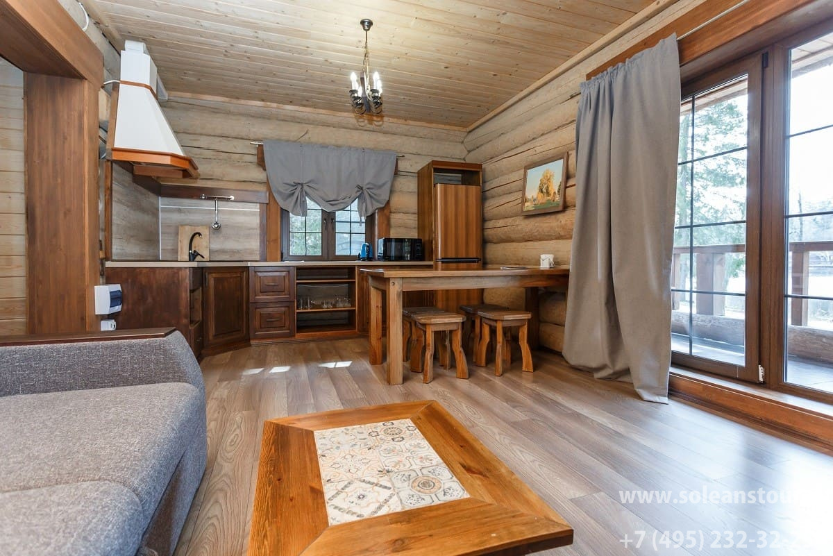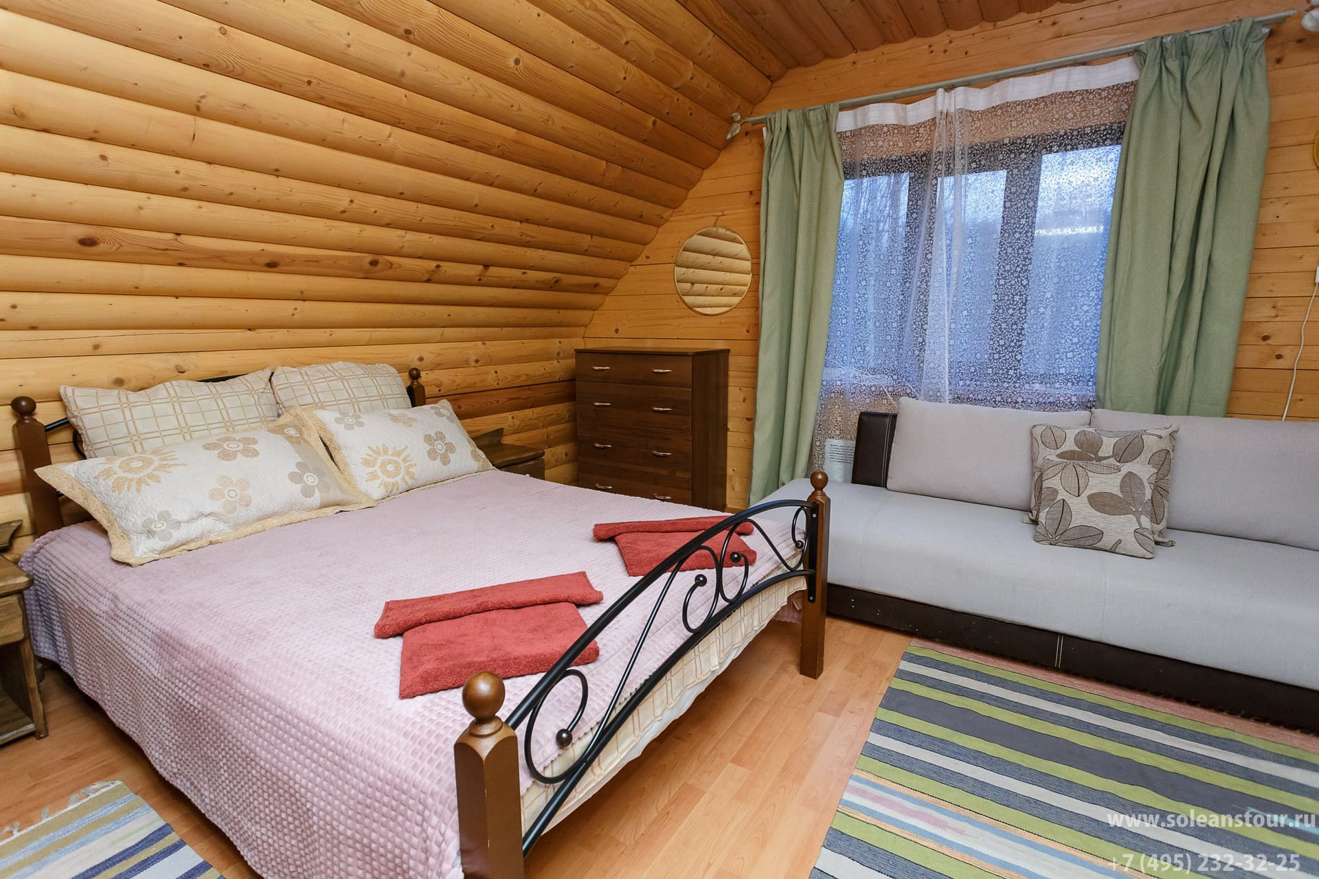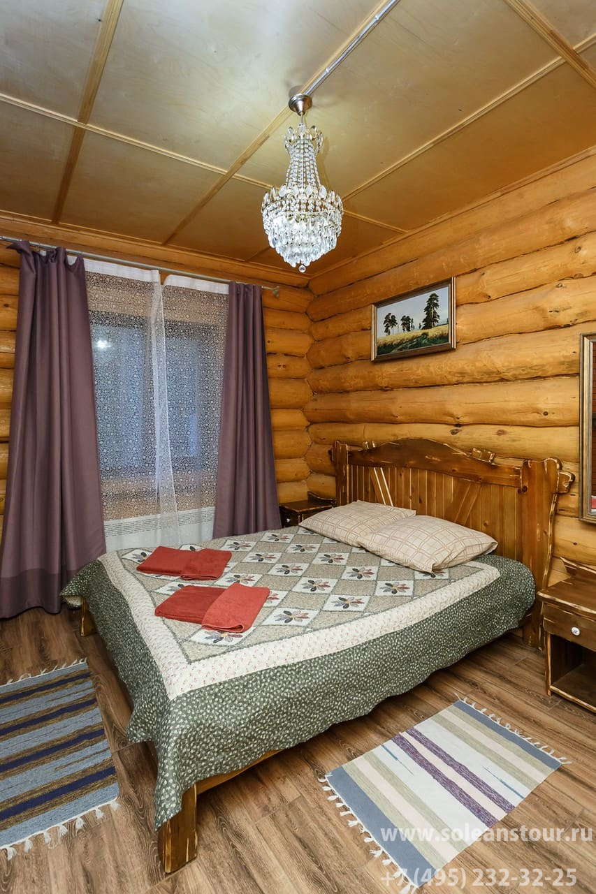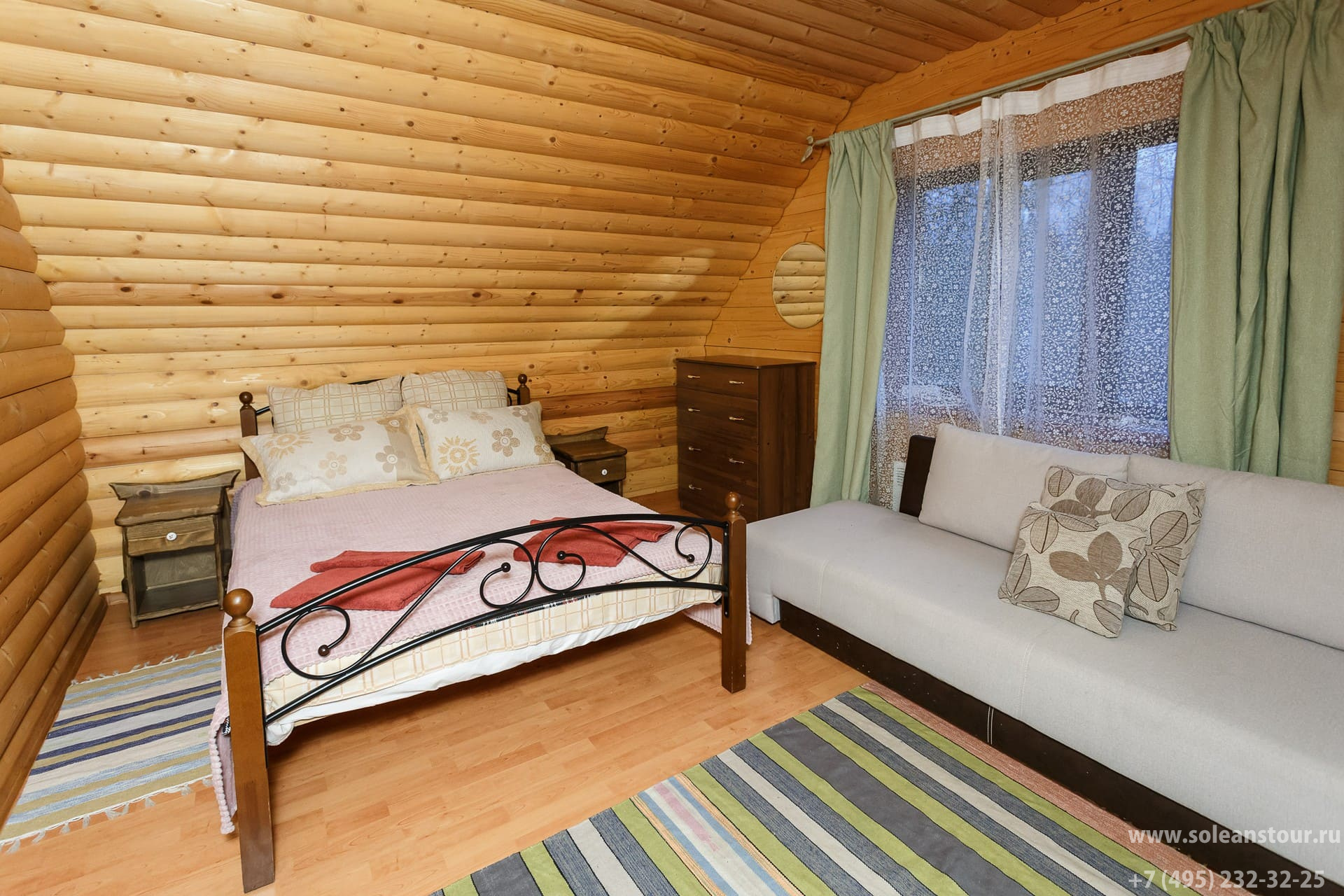 Отдельно стоящий коттедж на 3 спальни — уютный рубленный деревянный дом с авторской мебелью ручной работы, выполненный полностью из экологически чистых материалов. Дом расположен на берегу озера, имеет свою обособленную территорию, скрытую от посторонних глаз. На территории Дачи в 15 соток расположены русская баня, мангальная зона, собственный пирс с весельной лодкой (в теплое время года), места для парковки. В коттедже доступен Wi-Fi и кабельное/цифровое ТВ.