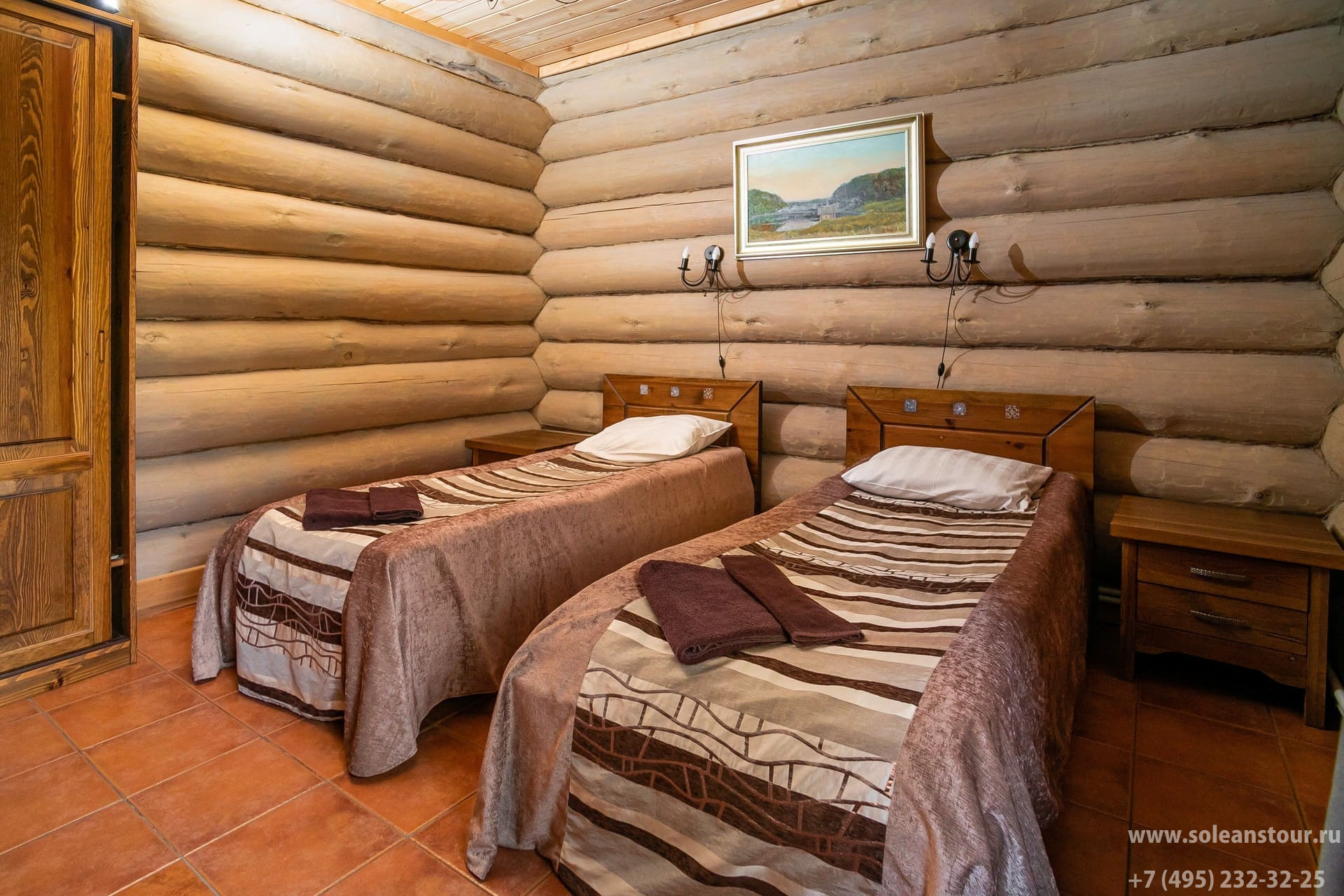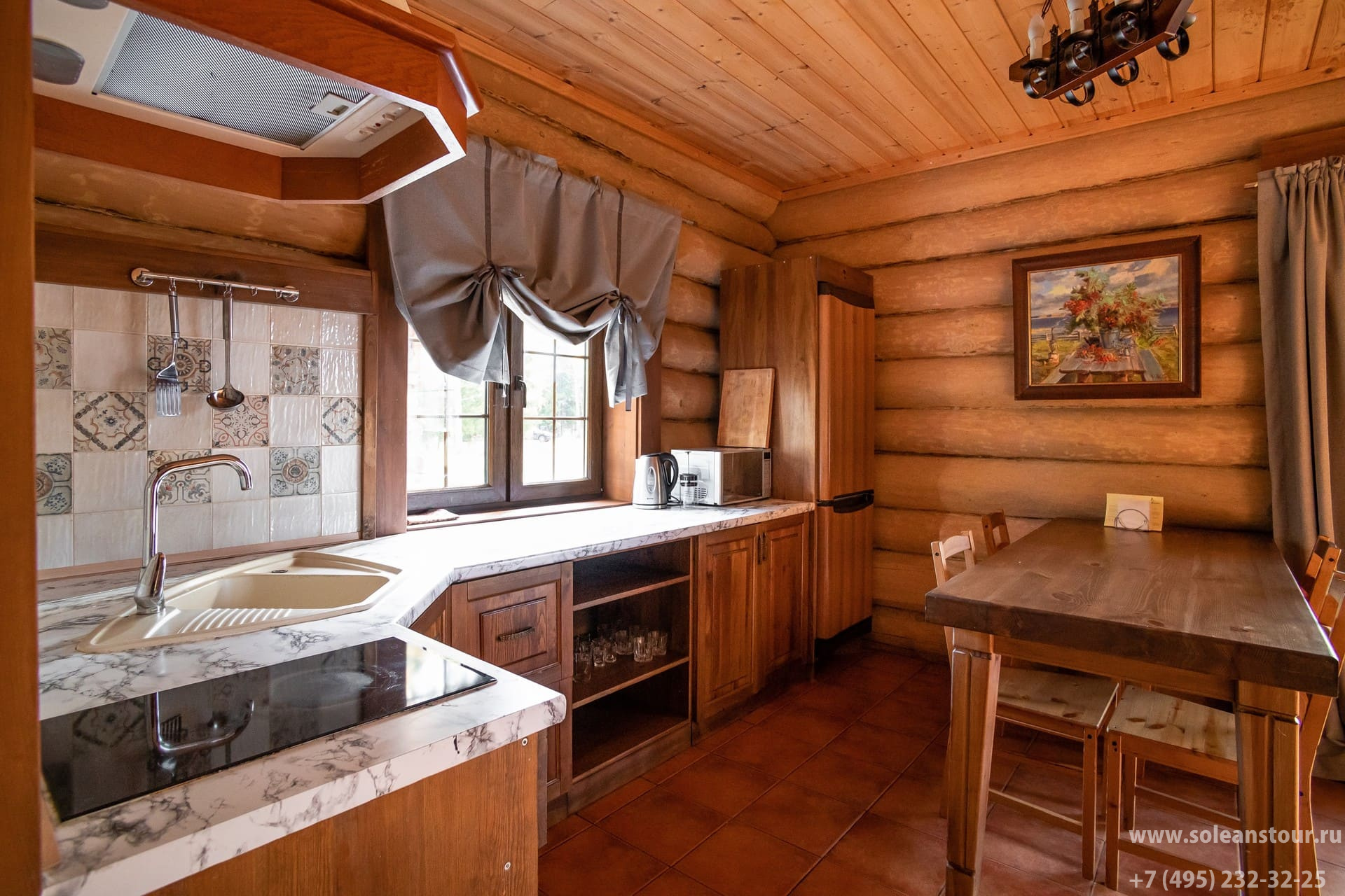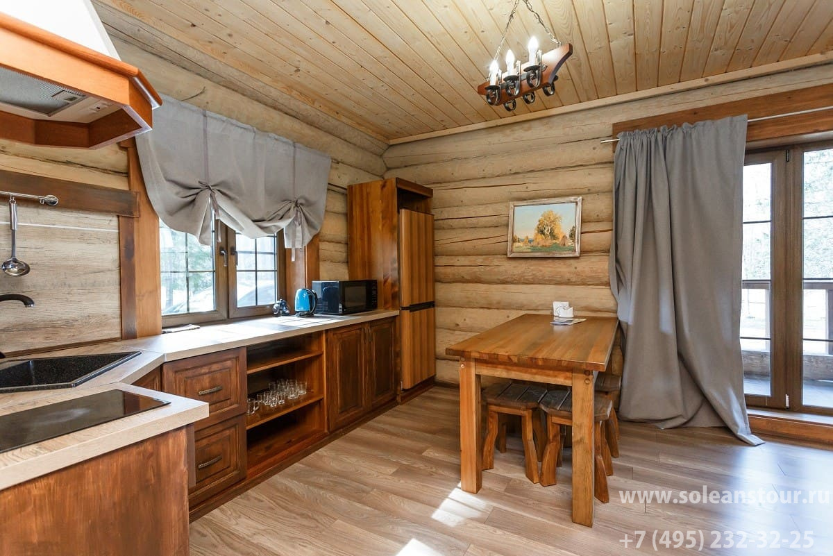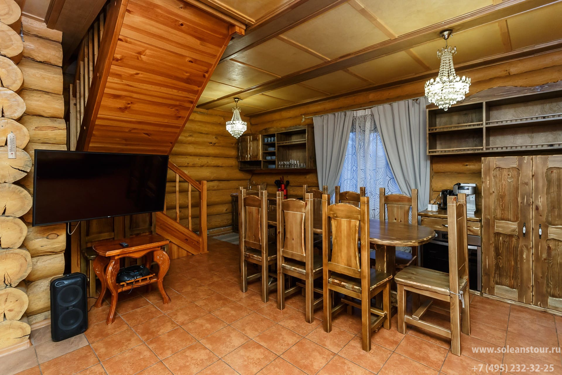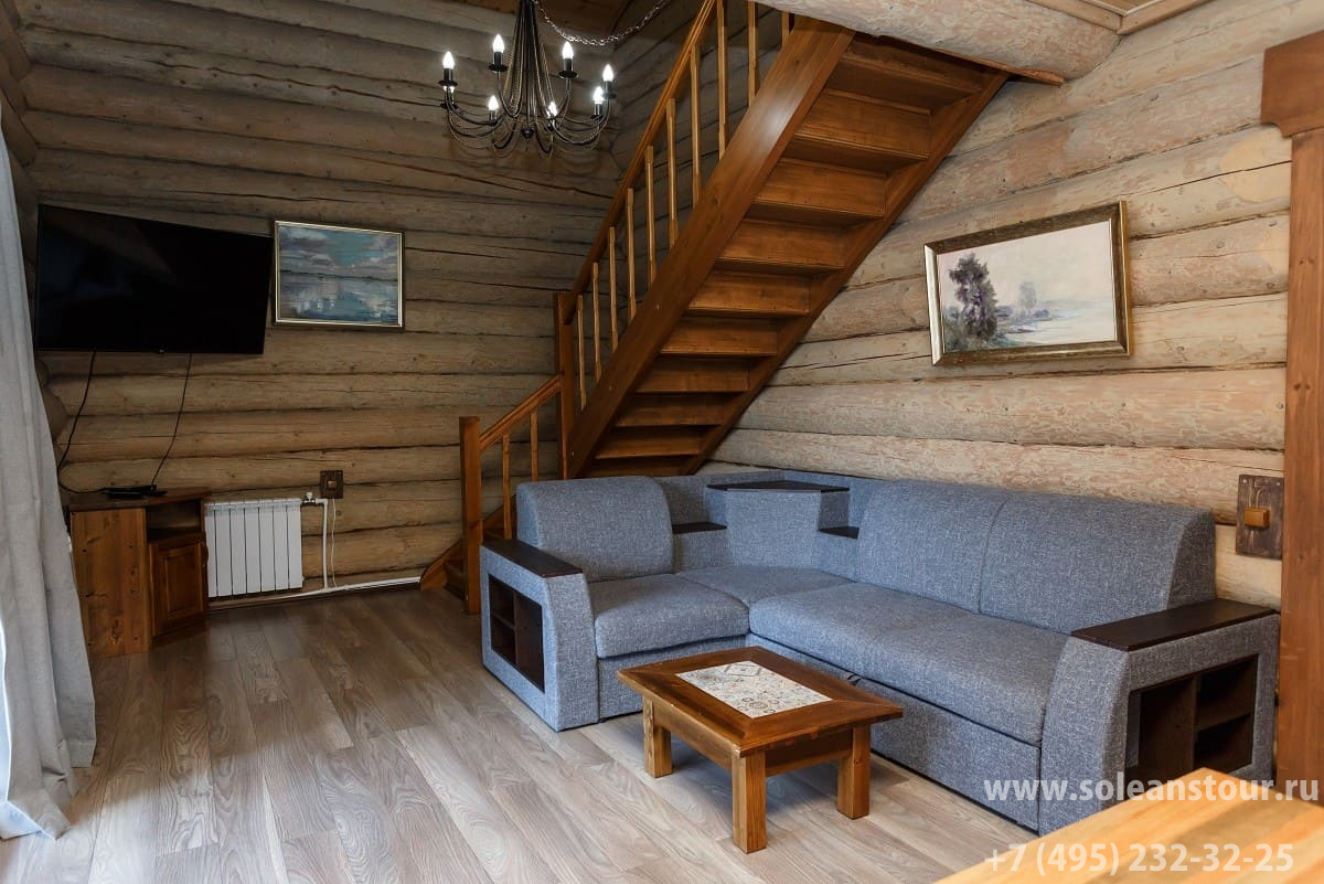 Отдельно стоящий коттедж на 3 спальни — уютный рубленный деревянный дом с авторской мебелью ручной работы, выполненный полностью из экологически чистых материалов. Дом расположен на берегу озера, имеет свою обособленную территорию, скрытую от посторонних глаз. На территории Дачи в 15 соток расположены русская баня, мангальная зона, собственный пирс с весельной лодкой (в теплое время года), места для парковки. В коттедже доступен Wi-Fi и кабельное/цифровое ТВ.