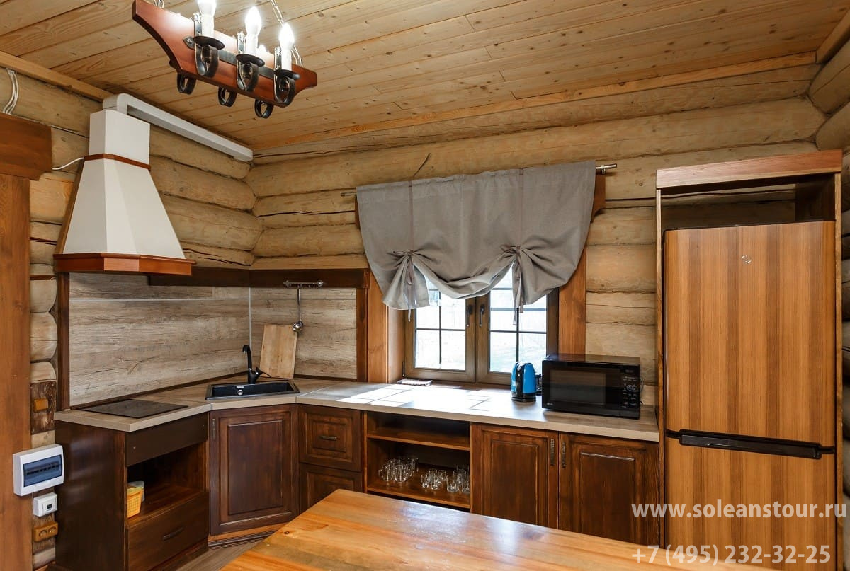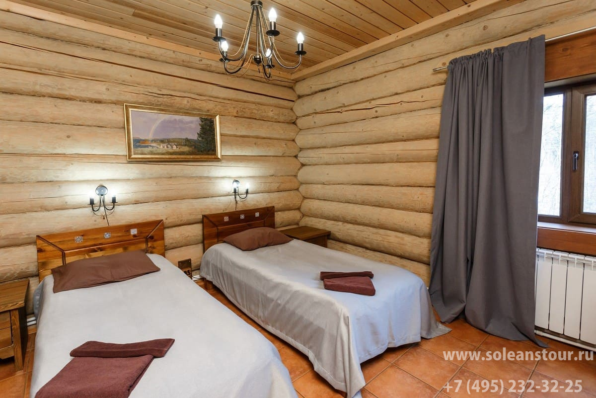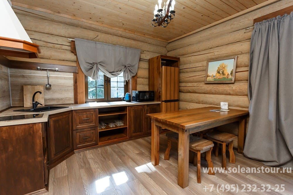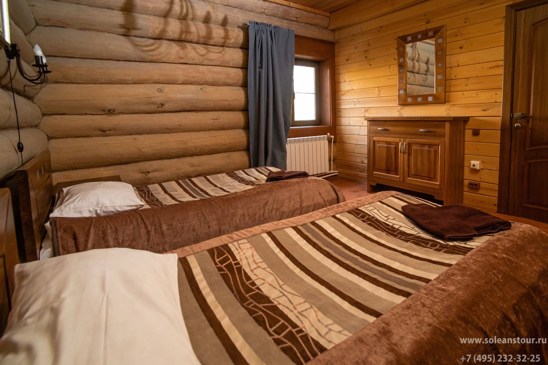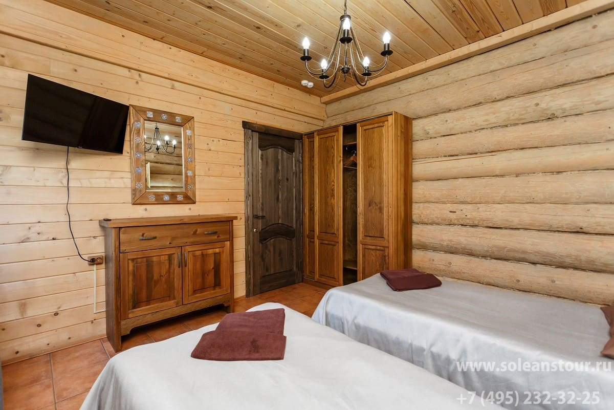 Отдельно стоящий коттедж на 3 спальни — уютный рубленный деревянный дом с авторской мебелью ручной работы, выполненный полностью из экологически чистых материалов. Дом расположен на берегу озера, имеет свою обособленную территорию, скрытую от посторонних глаз. На территории Дачи в 15 соток расположены русская баня, мангальная зона, собственный пирс с весельной лодкой (в теплое время года), места для парковки. В коттедже доступен Wi-Fi и кабельное/цифровое ТВ.