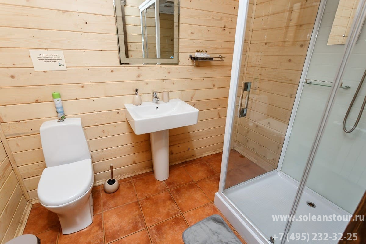 Коттедж состоит из 2 номеров с разными входами, первый либо второй этаж. В каждом номере: прихожая, холл, санузел с душевой кабиной, спальня с двуспальной кроватью, кухня-гостиная. Все дома расположены на берегу озера, потому из их панорамных окон открывается чудесный вид! Номера двухместные с 2 дополнительными местами. Доп места оплачиваются отдельно. Каждый номер оборудован современной техникой: кухонный гарнитур с варочной панелью, микроволновая печь, холодильник, электрочайник, LСD- телевизор с тарелкой «Триколор». Имеется бесплатный Wi-Fi.