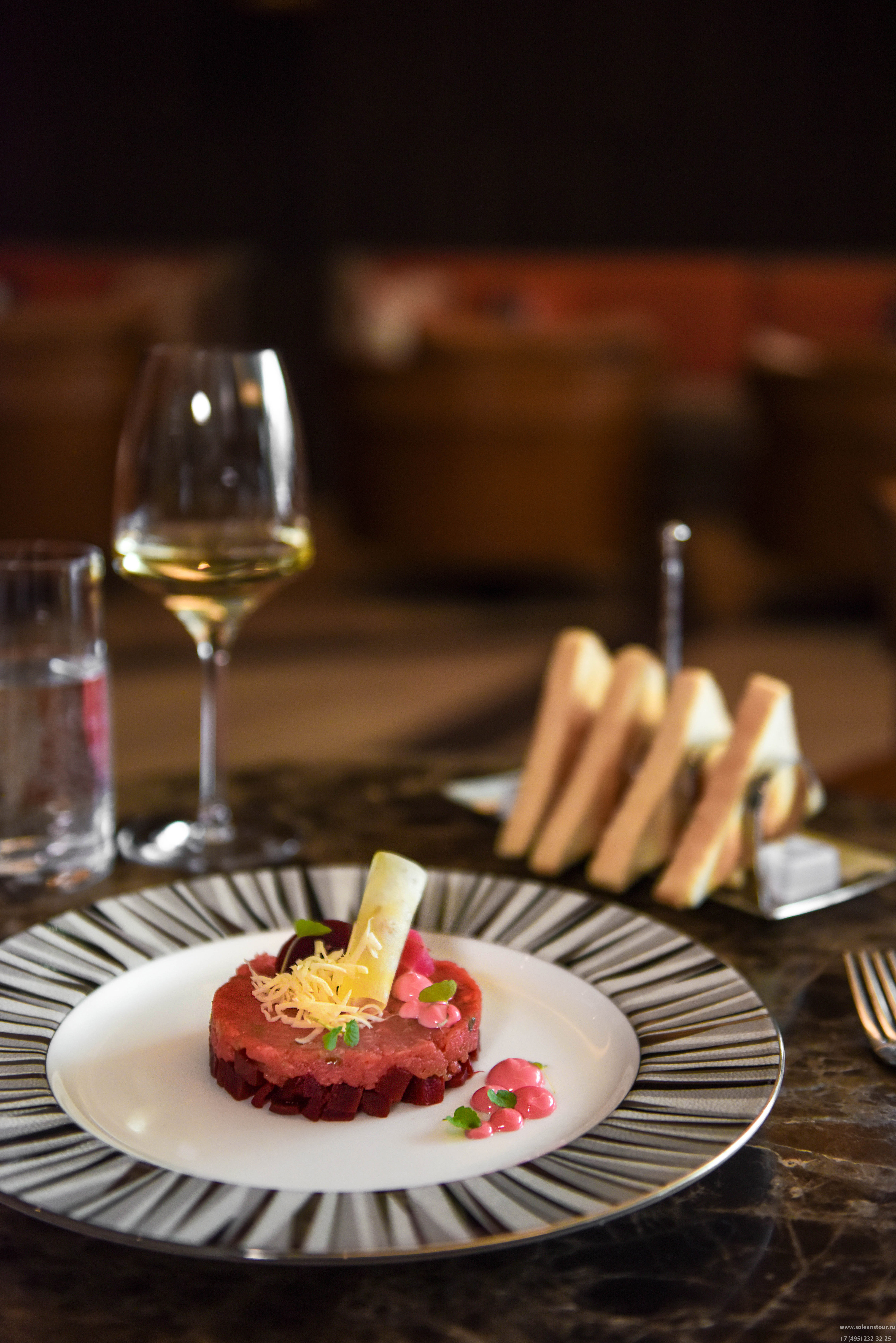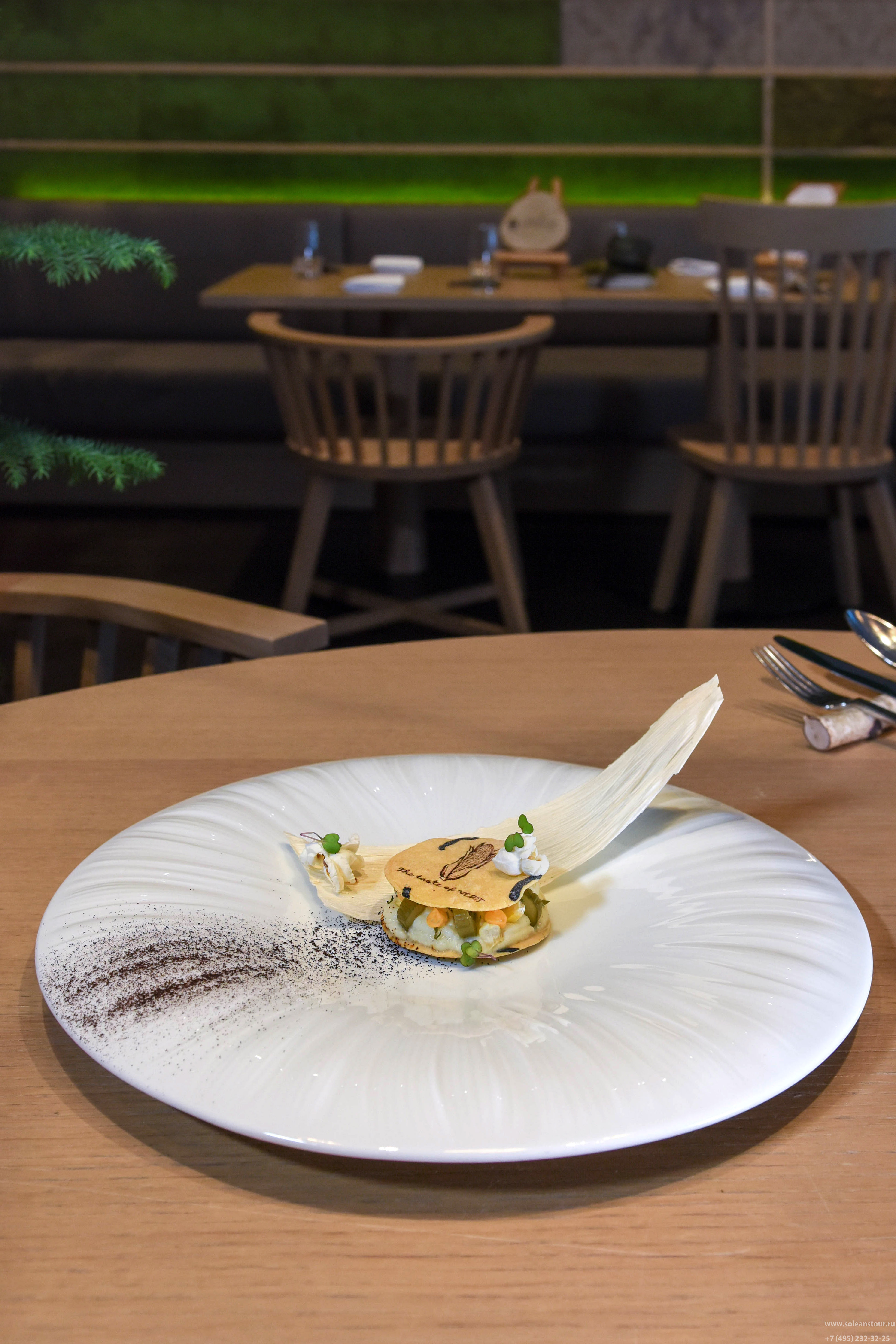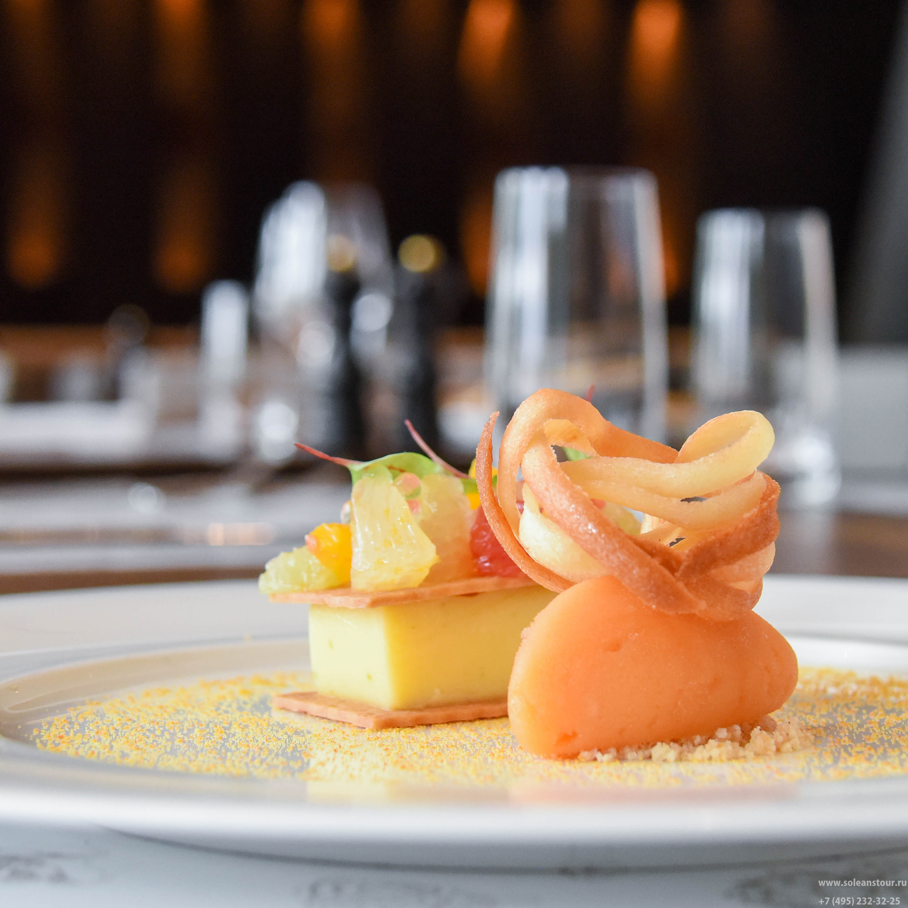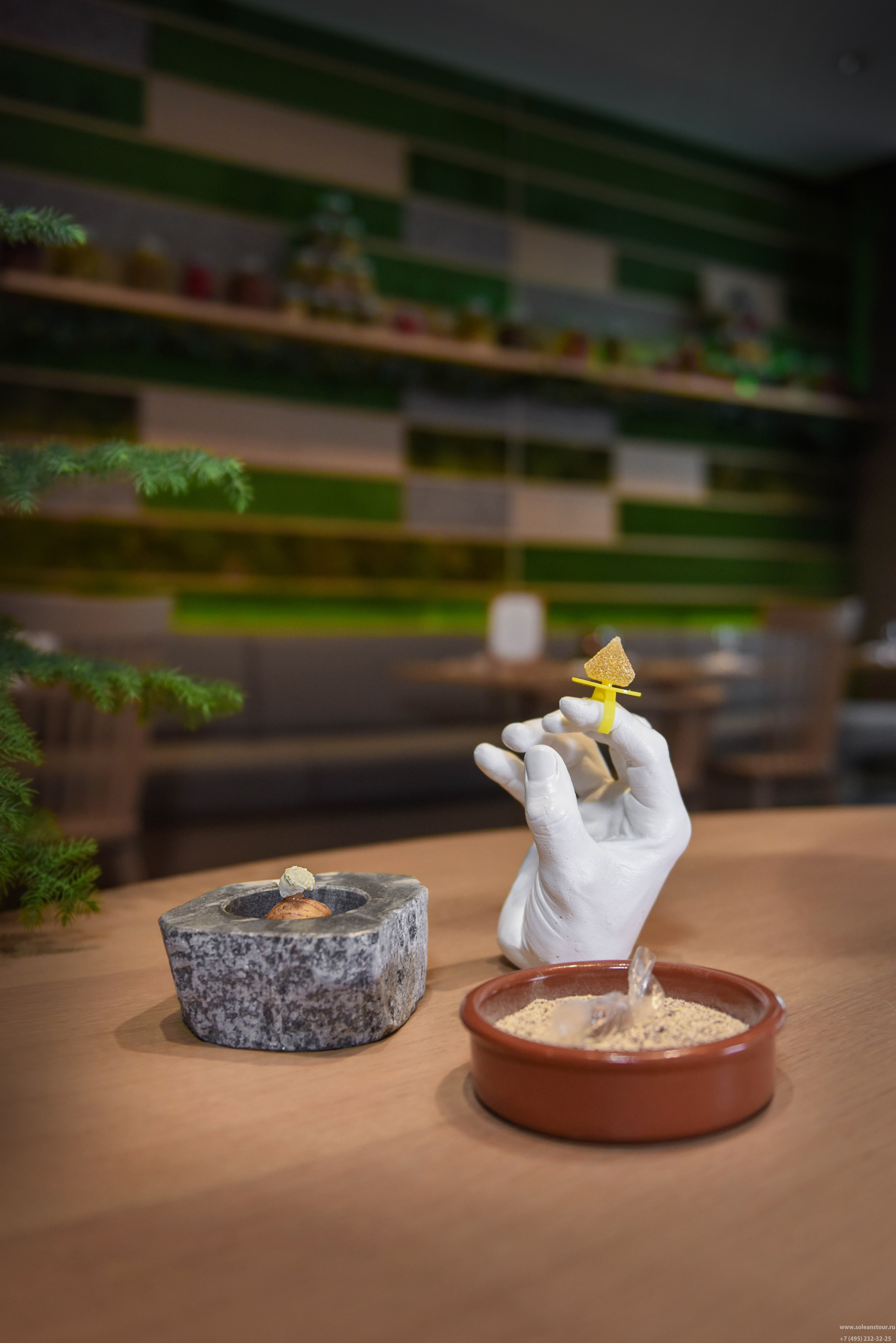 Studio Grigio - ресторан-бар. Есть вегетарианское меню. Коктейли, вино, сигары. Панорамный вид на территорию курорта и горы.